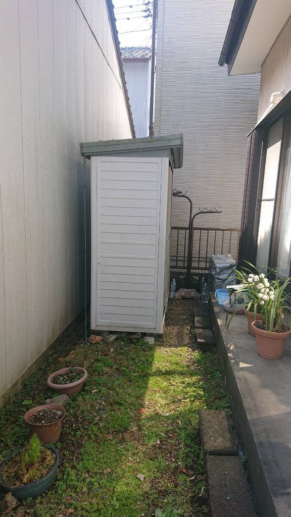 静岡市葵区某所での物置撤去工事の様子をお届けいたします。