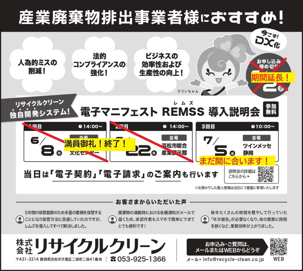 REMSSマニフェストリサイクルクリーンリサイクルクリーン藤枝営業所レムズ外構解体廃棄物管理票藤枝市解体解体工事電子マニフェスト静岡県中部