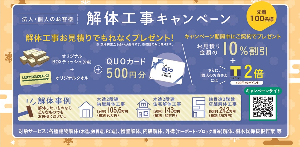 解体工事は施工実績多数のリサイクルクリーンにお任せ!