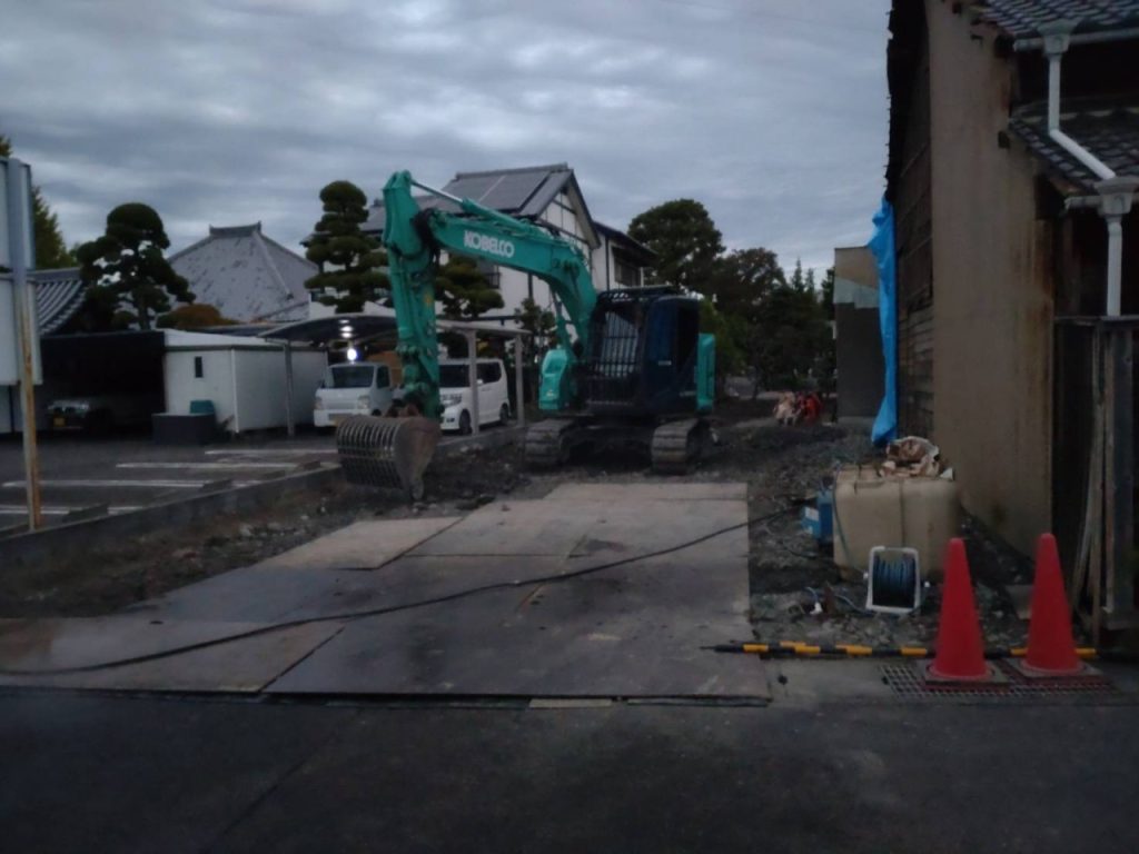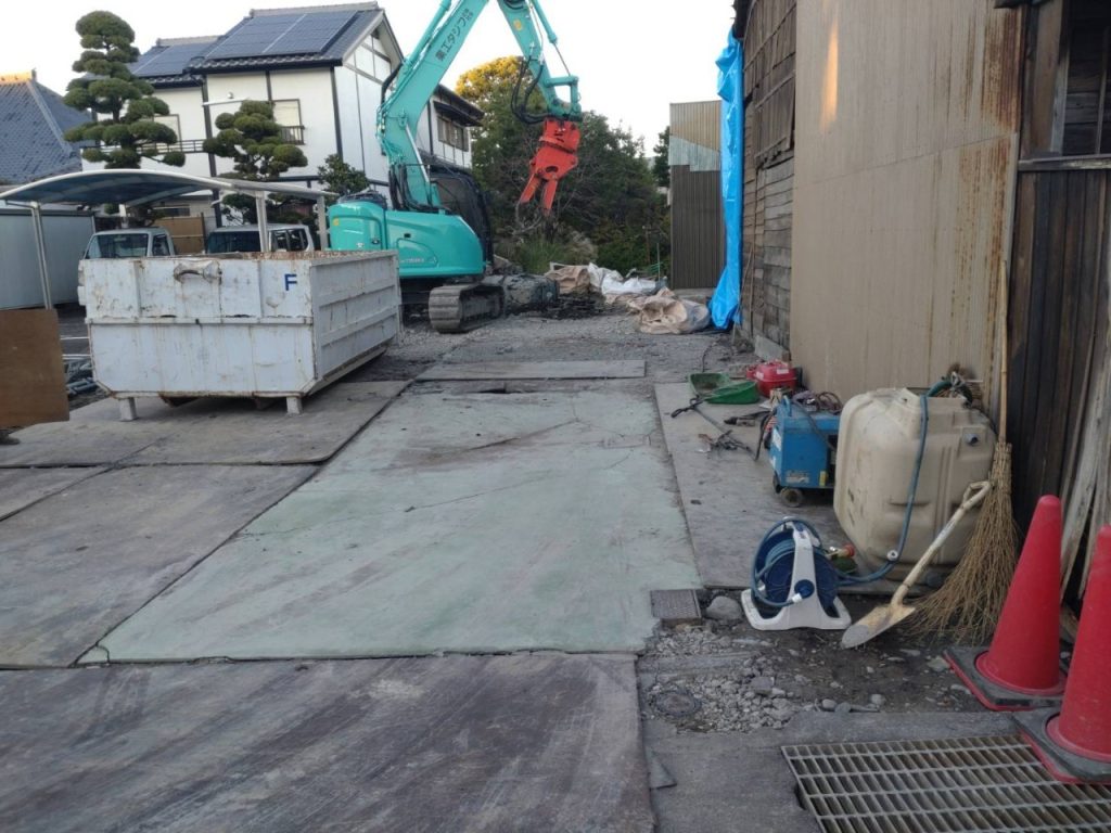 基礎を搬出しましたが地盤が悪く鉄板を敷きながら作業を行いました…