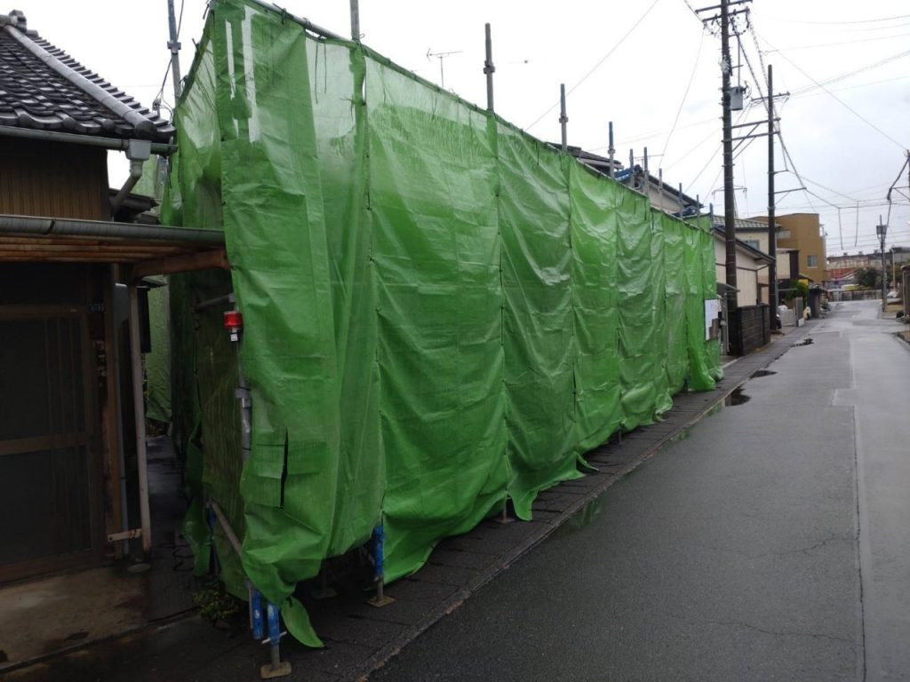 進入路が裏側になったので表の道路面を養生で囲みました。