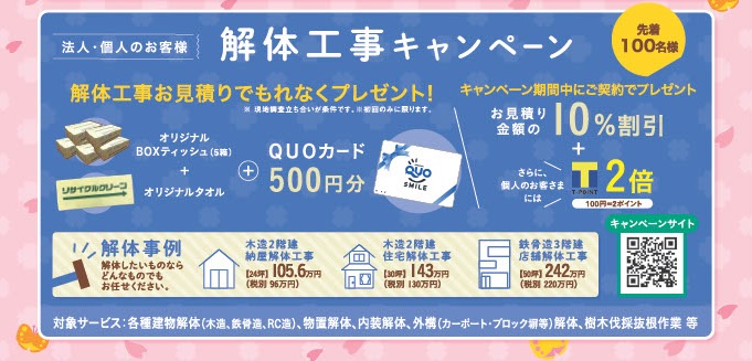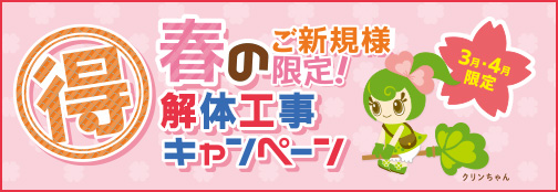 〇得 春のご新規様限定!解体キャンペーンは明日4/30お問合せまで!
