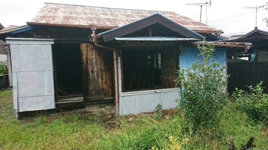 この状態で重機にてトタンを剥がしながら上屋を解体していきます。