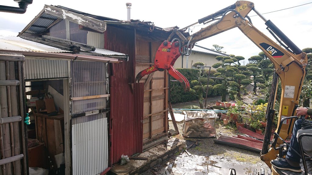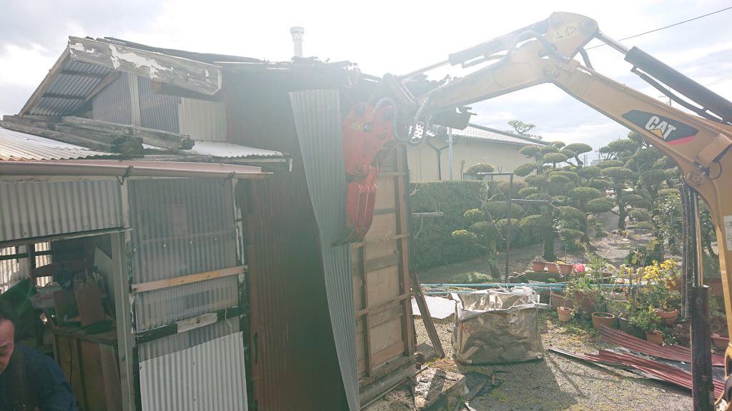 残置物撤去後は上屋解体に入ります。
