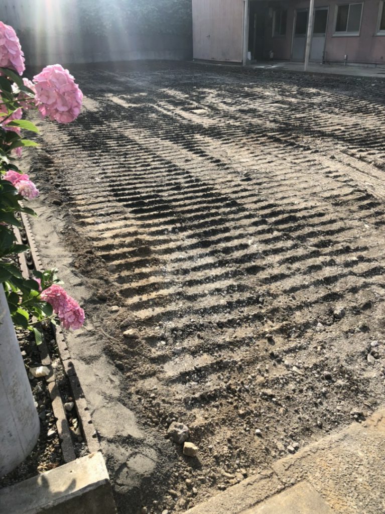 今回はこちらのインターロッキングブロックの撤去工事を行いました。