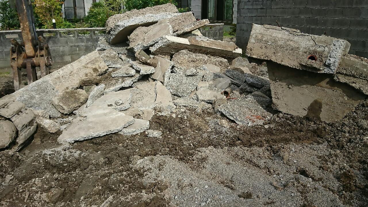 上屋を重機にて解体した後は基礎をおこしていきます。