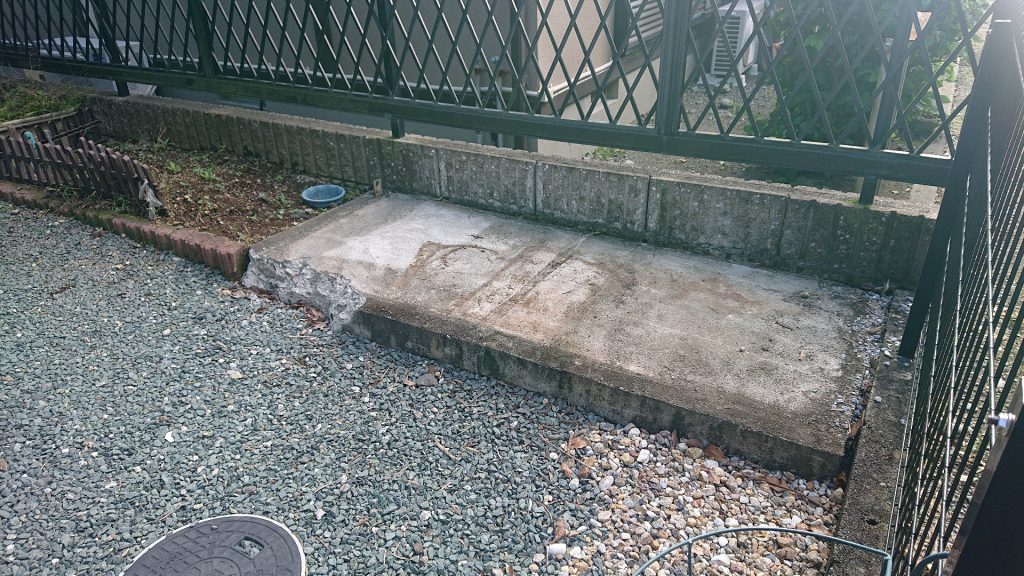 土間解体工事といっても、物置が不要になったためお施主様本人で解体してみたものの、