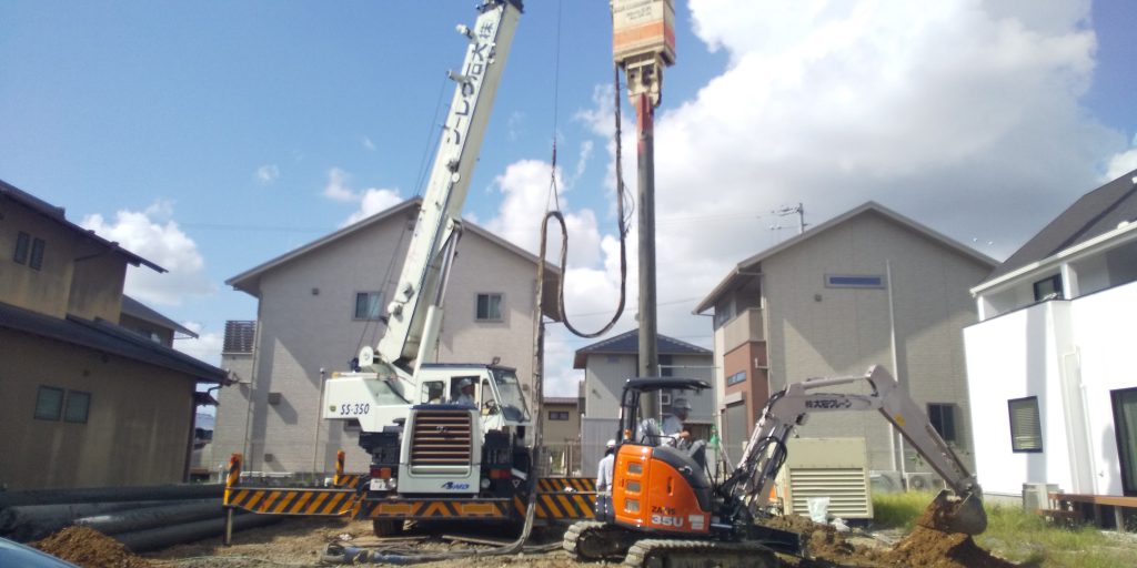 木造住宅完了後、Φ300 長さ10mの杭 31本を