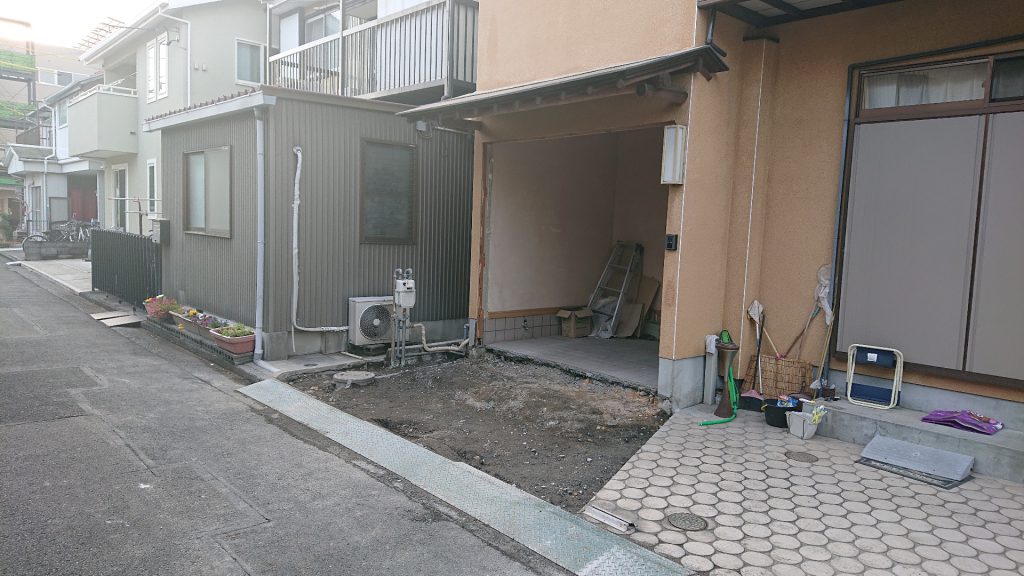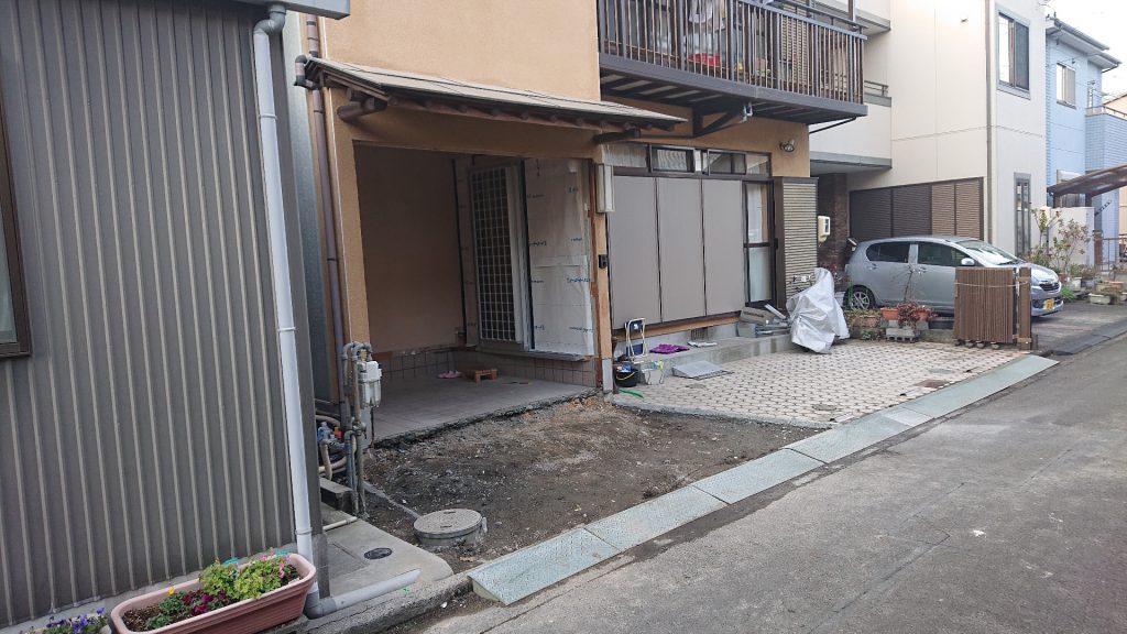 バリアフリー化に伴う外構撤去と玄関部分の減築に伴う解体工事です。