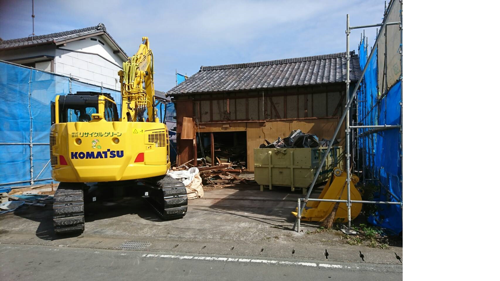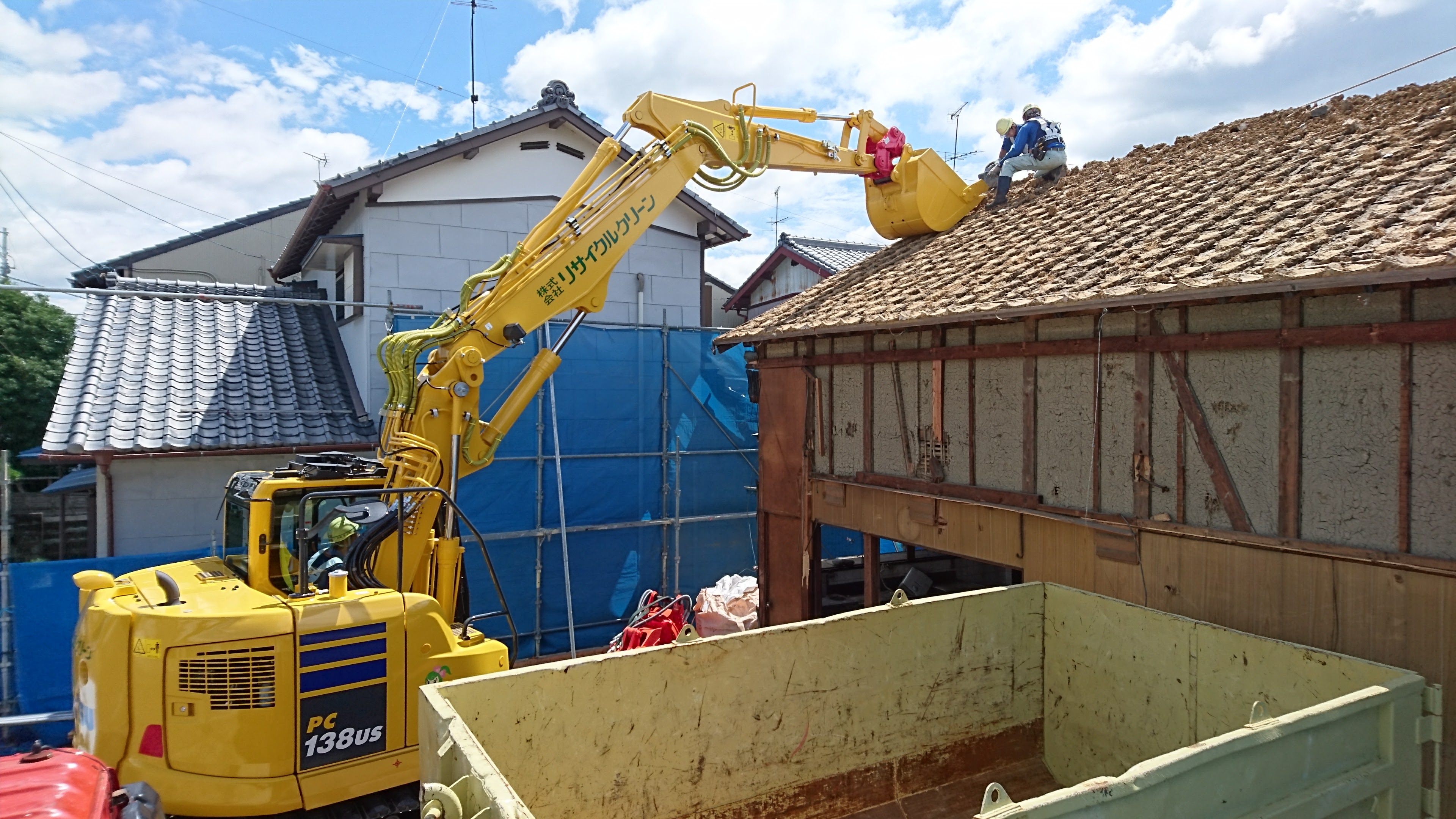 解体工事の手順としては内装材撤去~屋根材撤去~上屋解体~基礎解体~外溝撤去など順番で行っていきます。