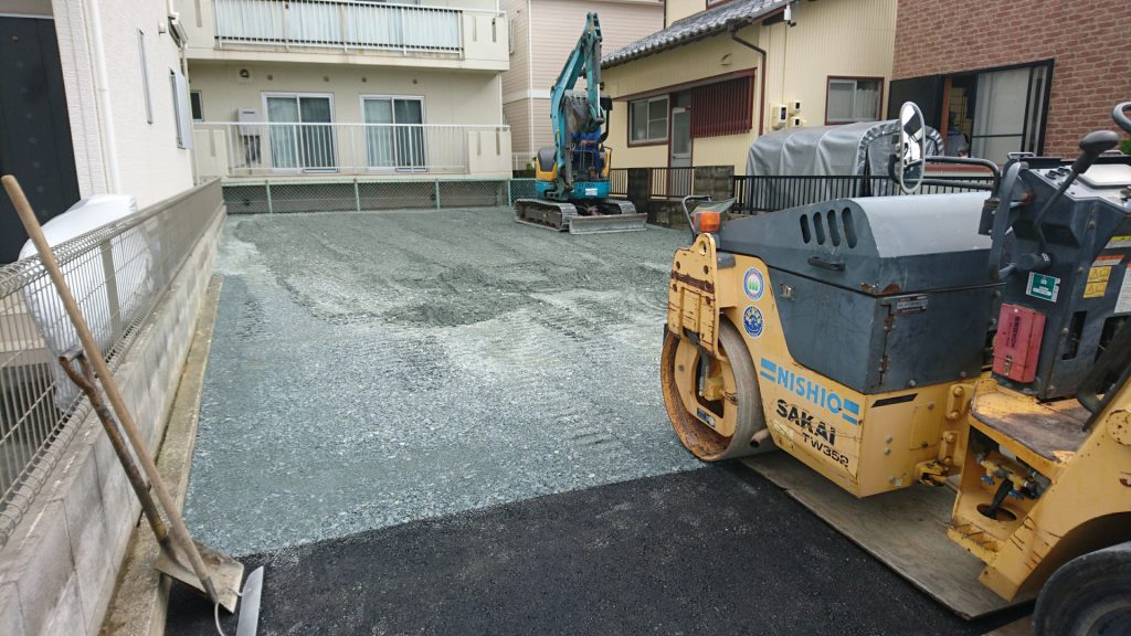 砕石の敷き均しや、アスファルト舗装等の施行も可能となっております。