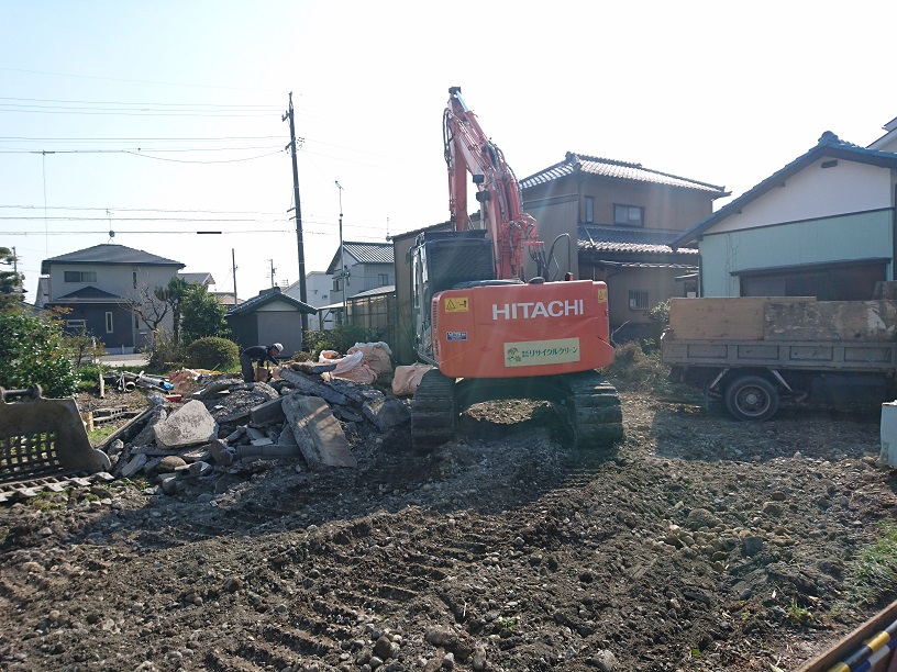 写真ではもう上屋が無くなって基礎の解体撤去を行っています。