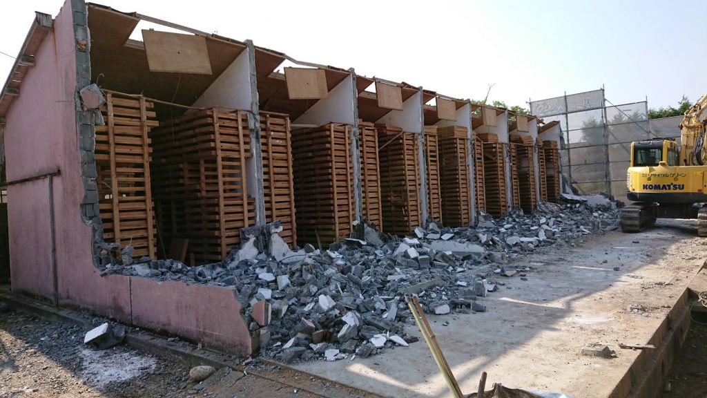現在、浜北区にてみかん貯蔵庫の解体を施工しております。