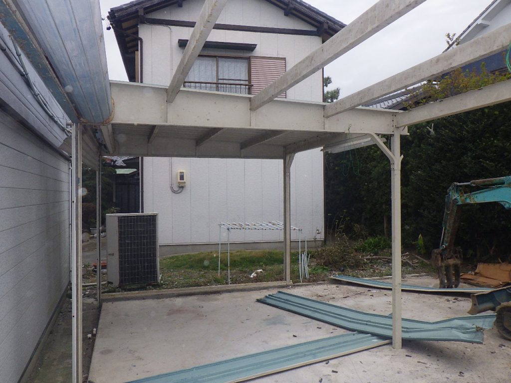 壁・屋根を撤去した後に、梁、シャッター、柱を撤去しました。