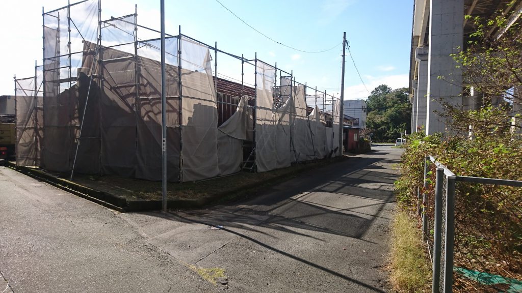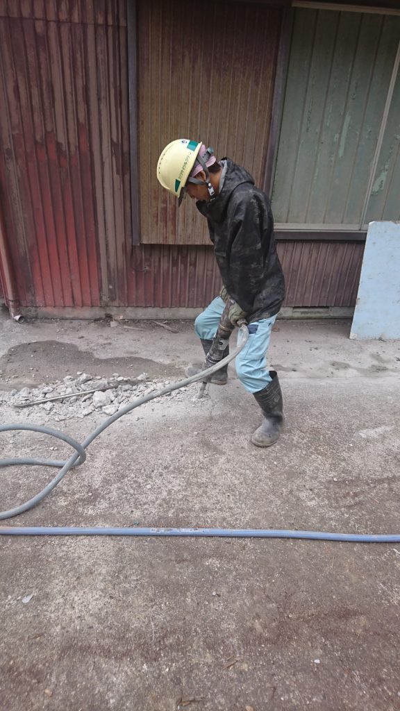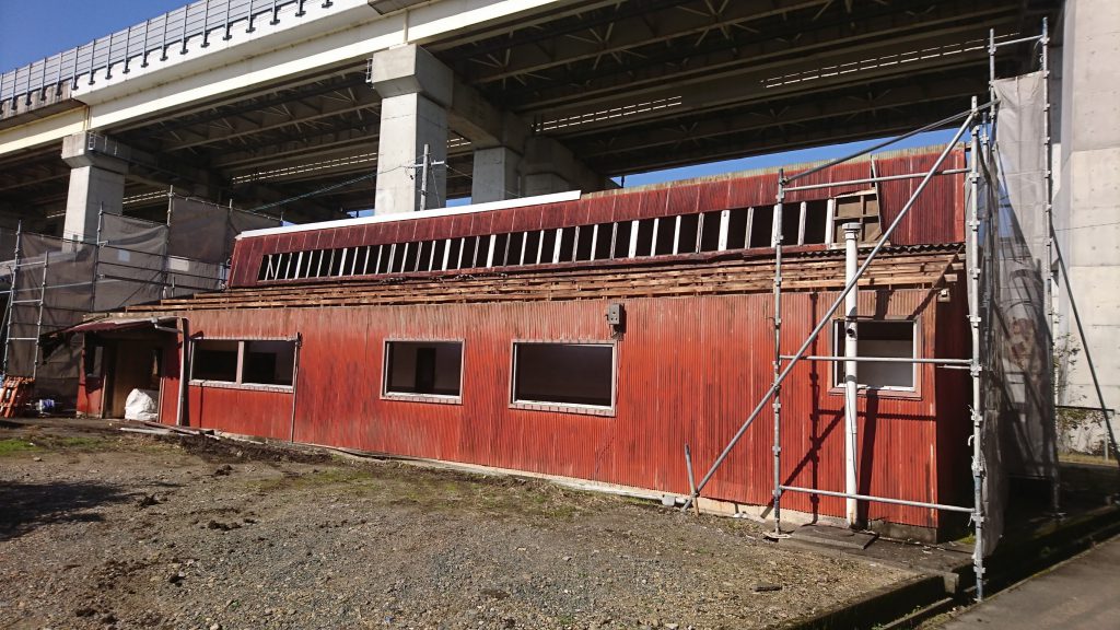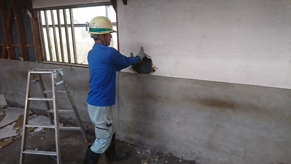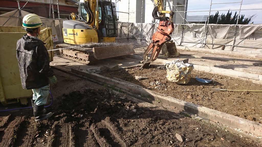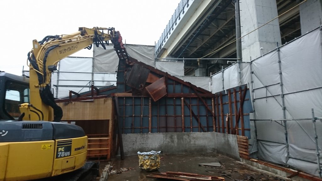 建物内部の解体終了後に、上屋と基礎の撤去に入ります。