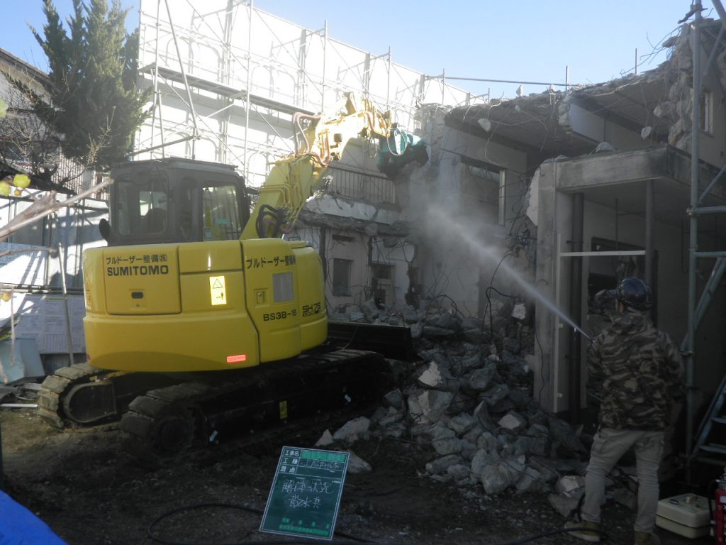 重機もBH0.25m3クラスですが、標準仕様では解体が出来ないためツーピースブームを完備した機械での作業となりました。