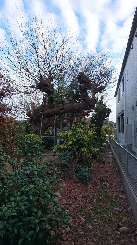 施主様所有のアパート裏に、高い樹木がありました。