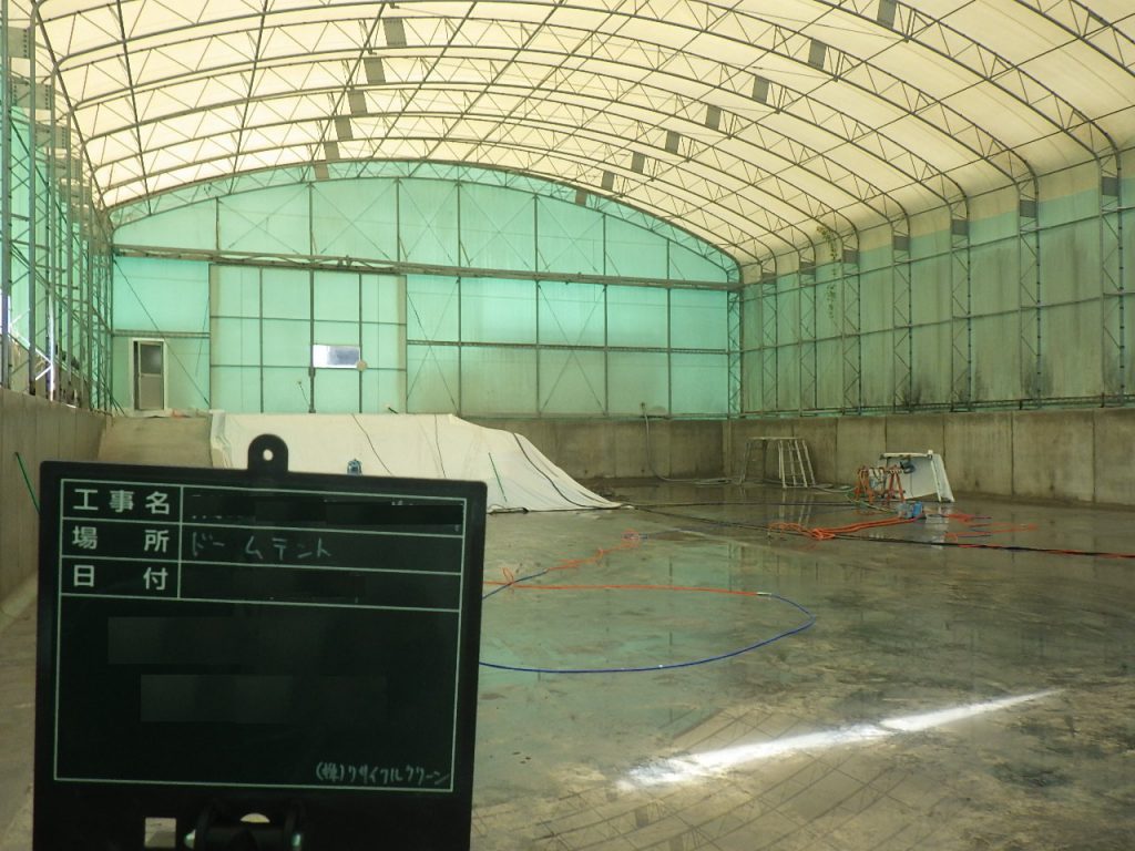 灰置き場として使用されていたドームテントのダイオキシン除去が完了しました。