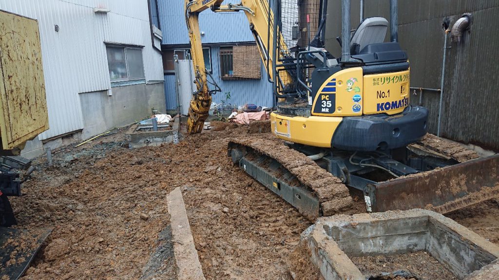 上屋解体後は基礎の解体です。