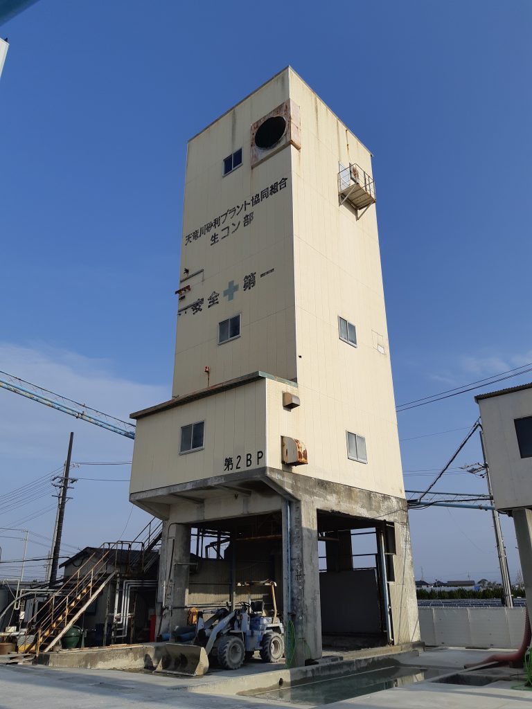 解体現場は、浜松市東区常光町にある天竜川砂利プラント協同組合さんの生コン部敷地内の旧プラント塔屋です。