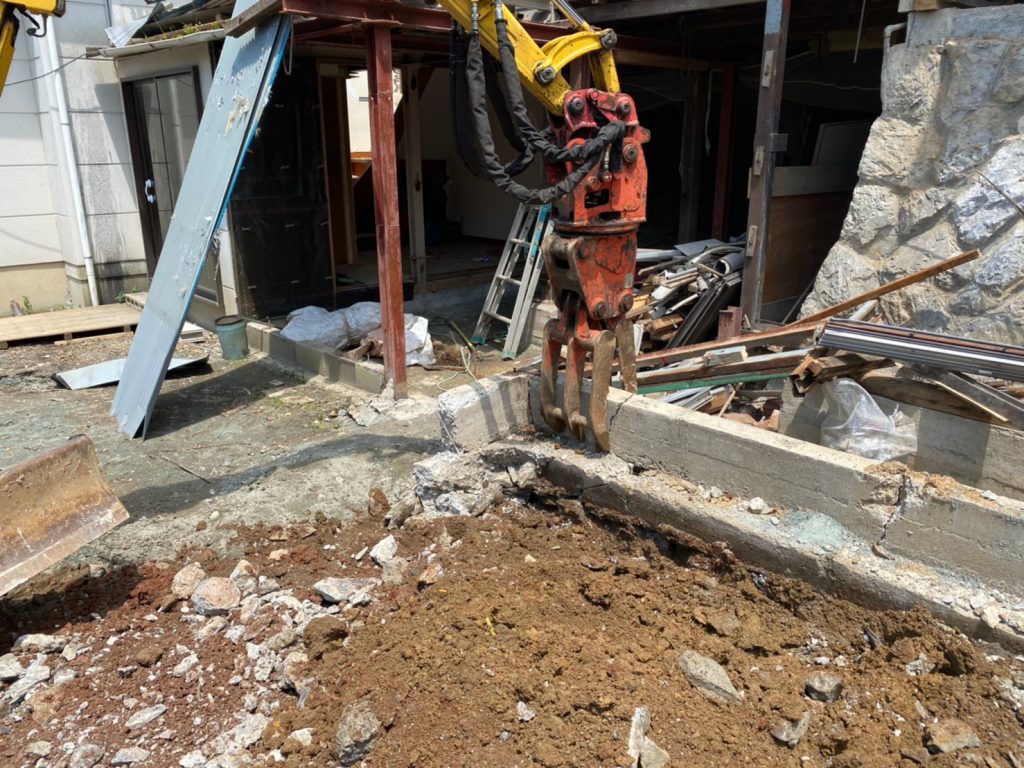 上屋の解体後、基礎の解体となります。ここで重機の活躍です。