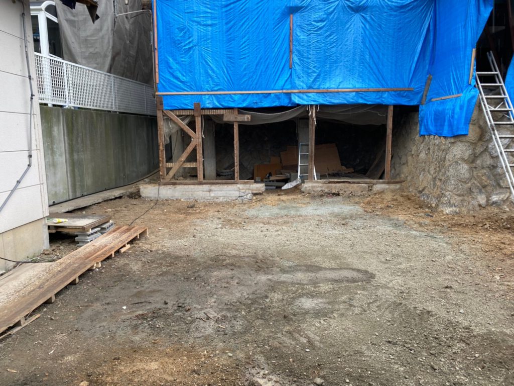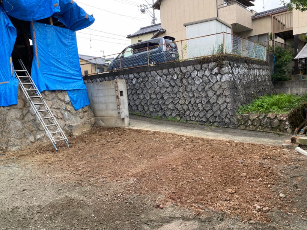基礎解体完了後、整地をして切り離し部分の雨養生をして完了となります。