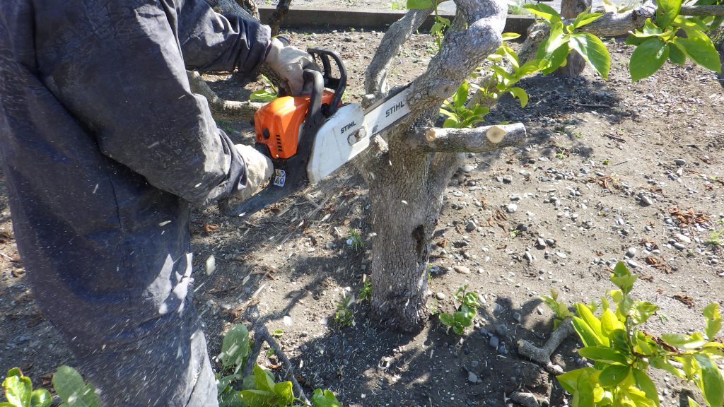 幹・枝部分ををチェーンソーで伐採します
