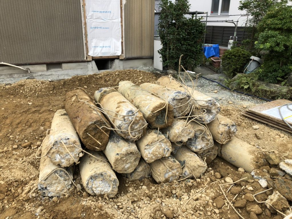 散水しながらの上屋解体、基礎撤去、パイル⑩数本を撤去して、大工さんに引き渡しました。