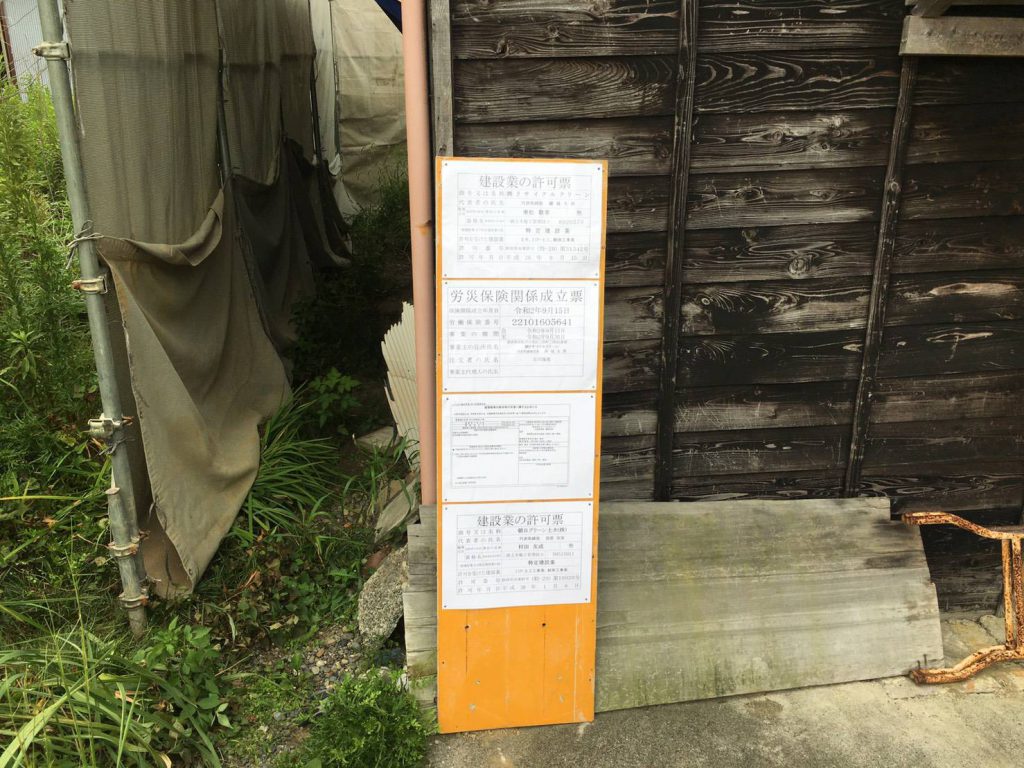 こちらが全景となります。 毎度おなじみの建設業の許可表示等です。