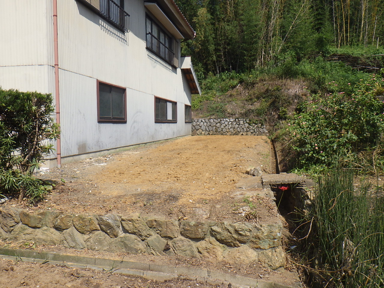 1棟目と2棟目の間に石垣があり、石垣を残しての施工を行う為