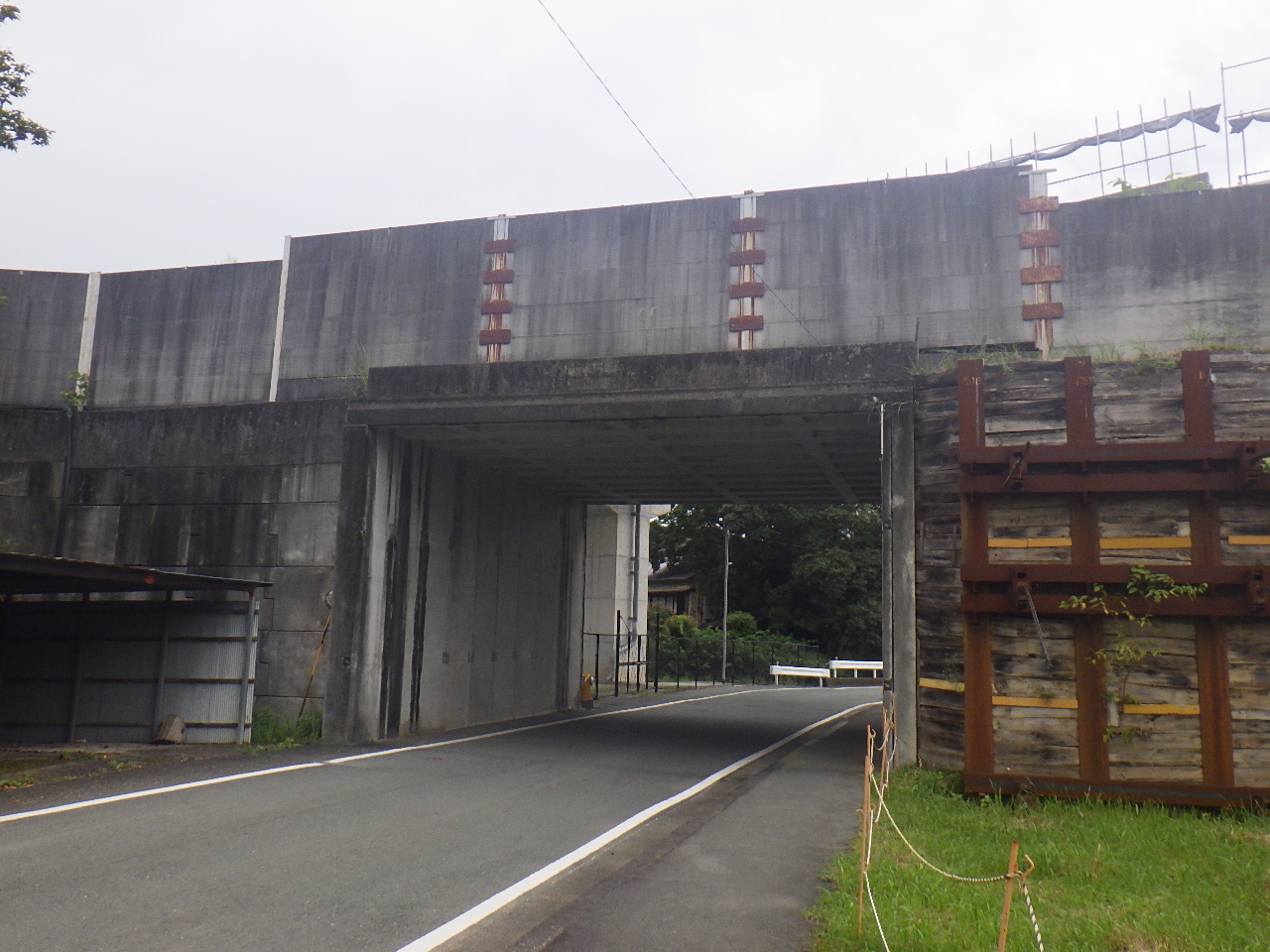 仮設材・既設道路の撤去後、RC造の橋梁撤去工事を行い