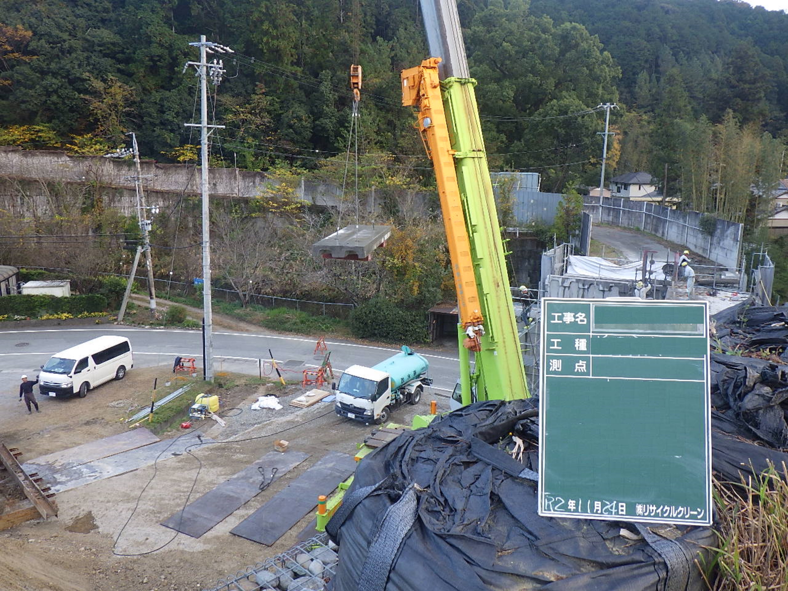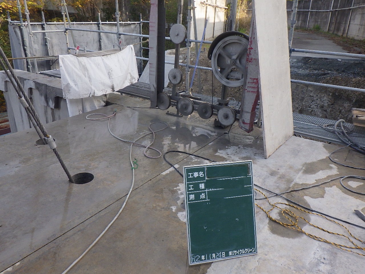 降ろしたらワイヤーを外し支持材を撤去して大割機にてコンクリートを