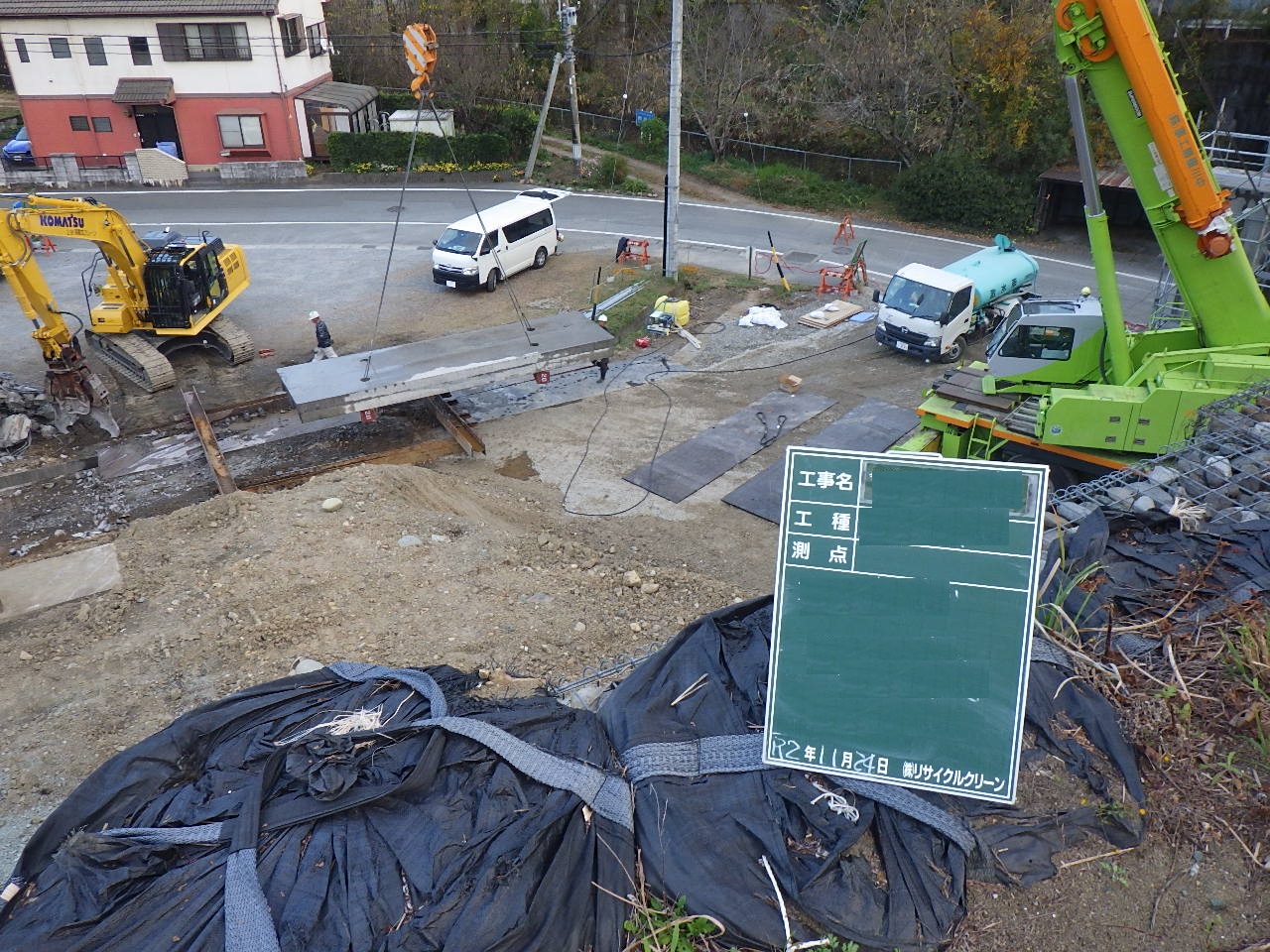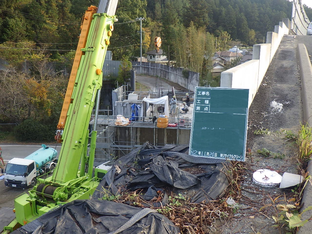 今回施工箇所は道路を全面通行止め(時間開放・夜間開放)として