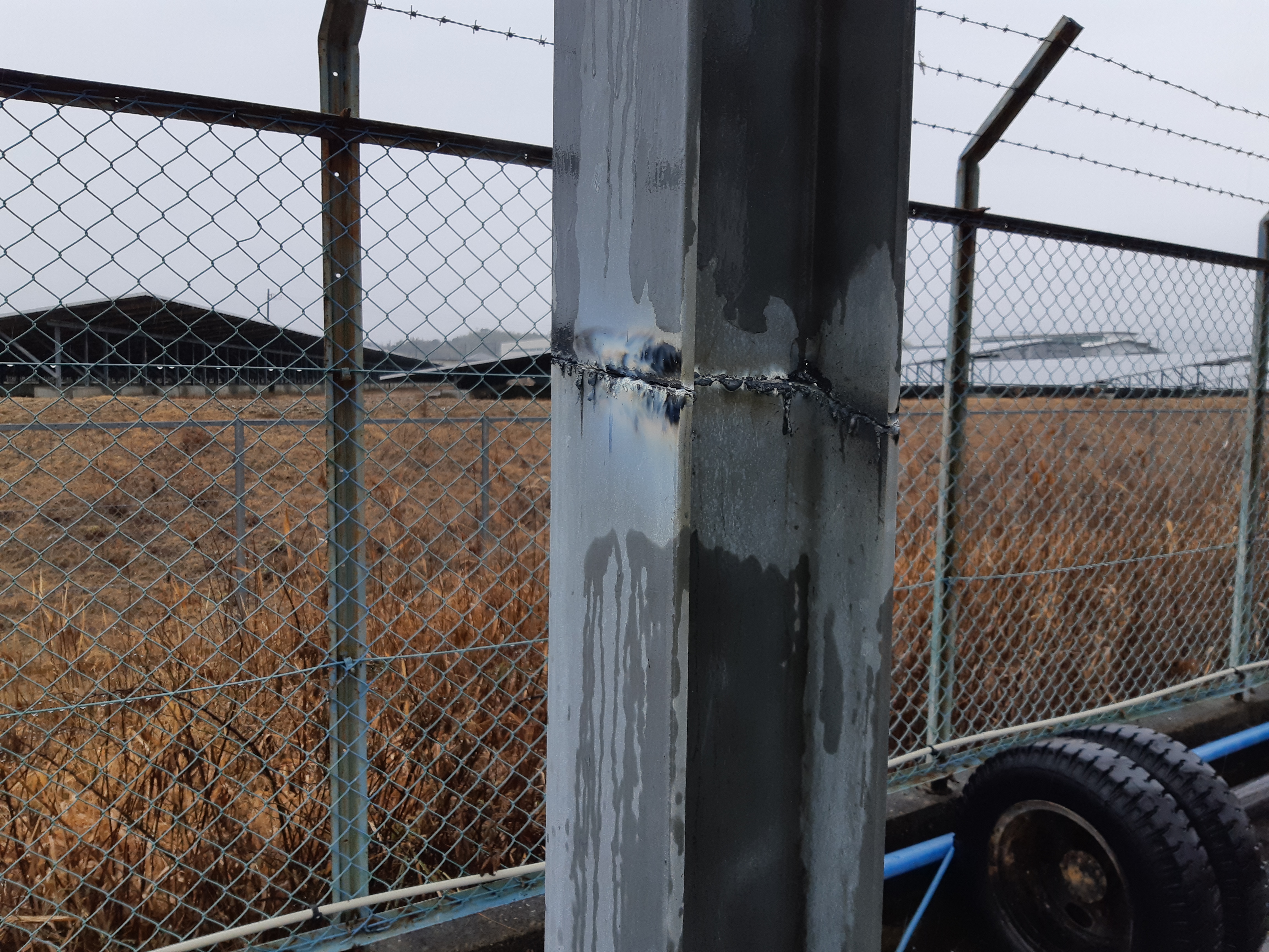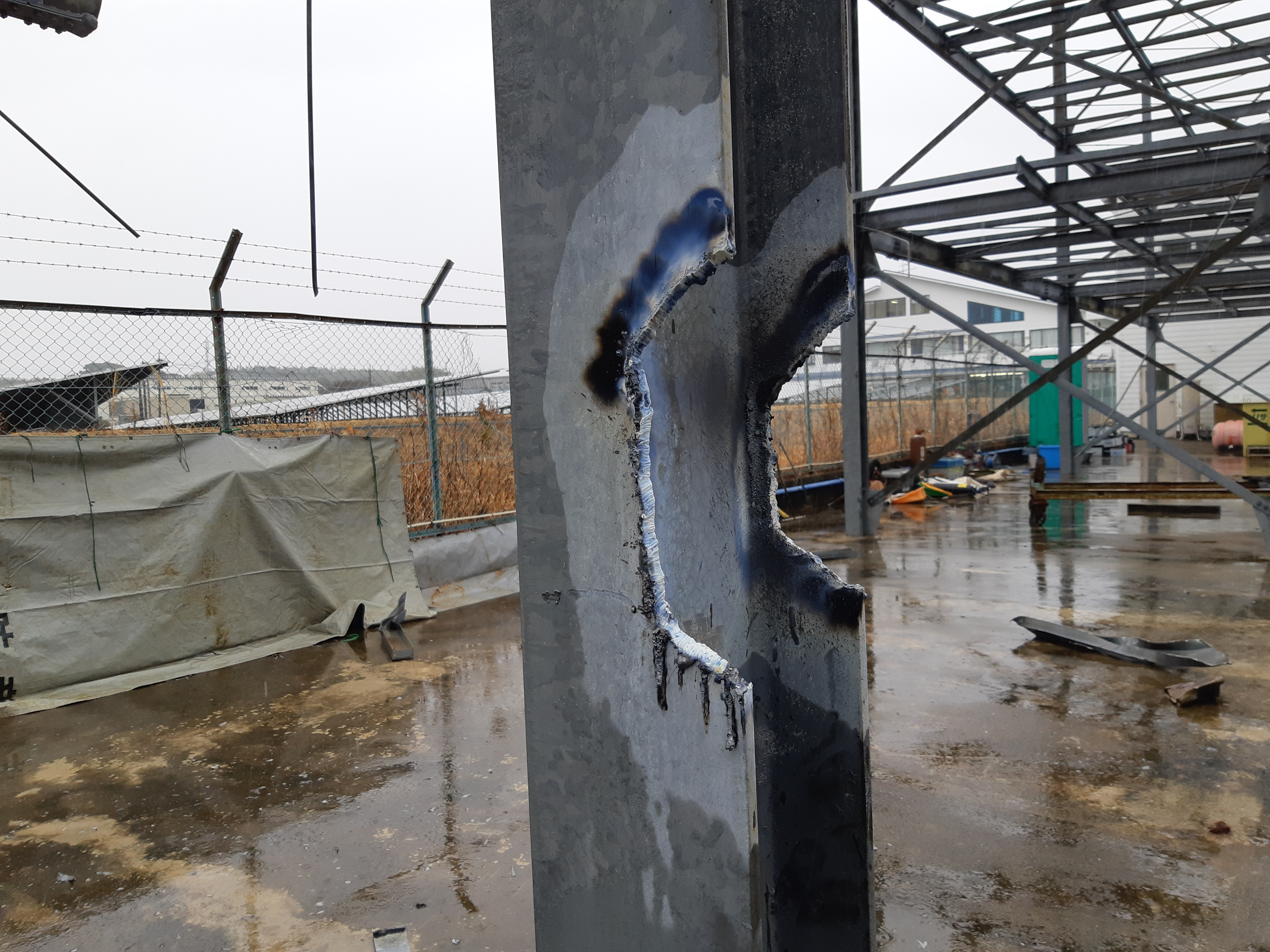 続いて、柱根元部分に酸素にて切断、切欠きを入れます。