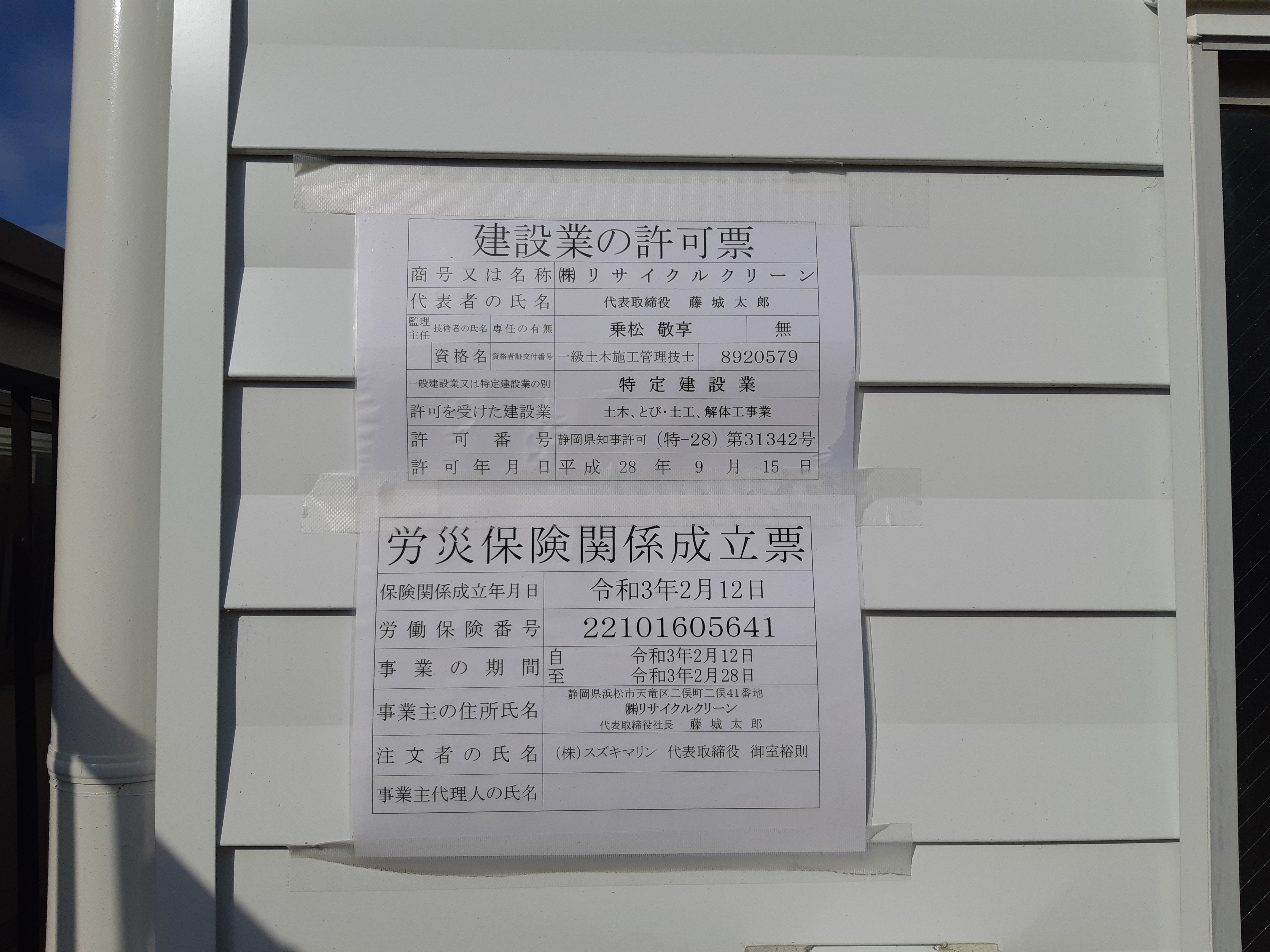 こちらは、建設業許可証等の掲示状況です。