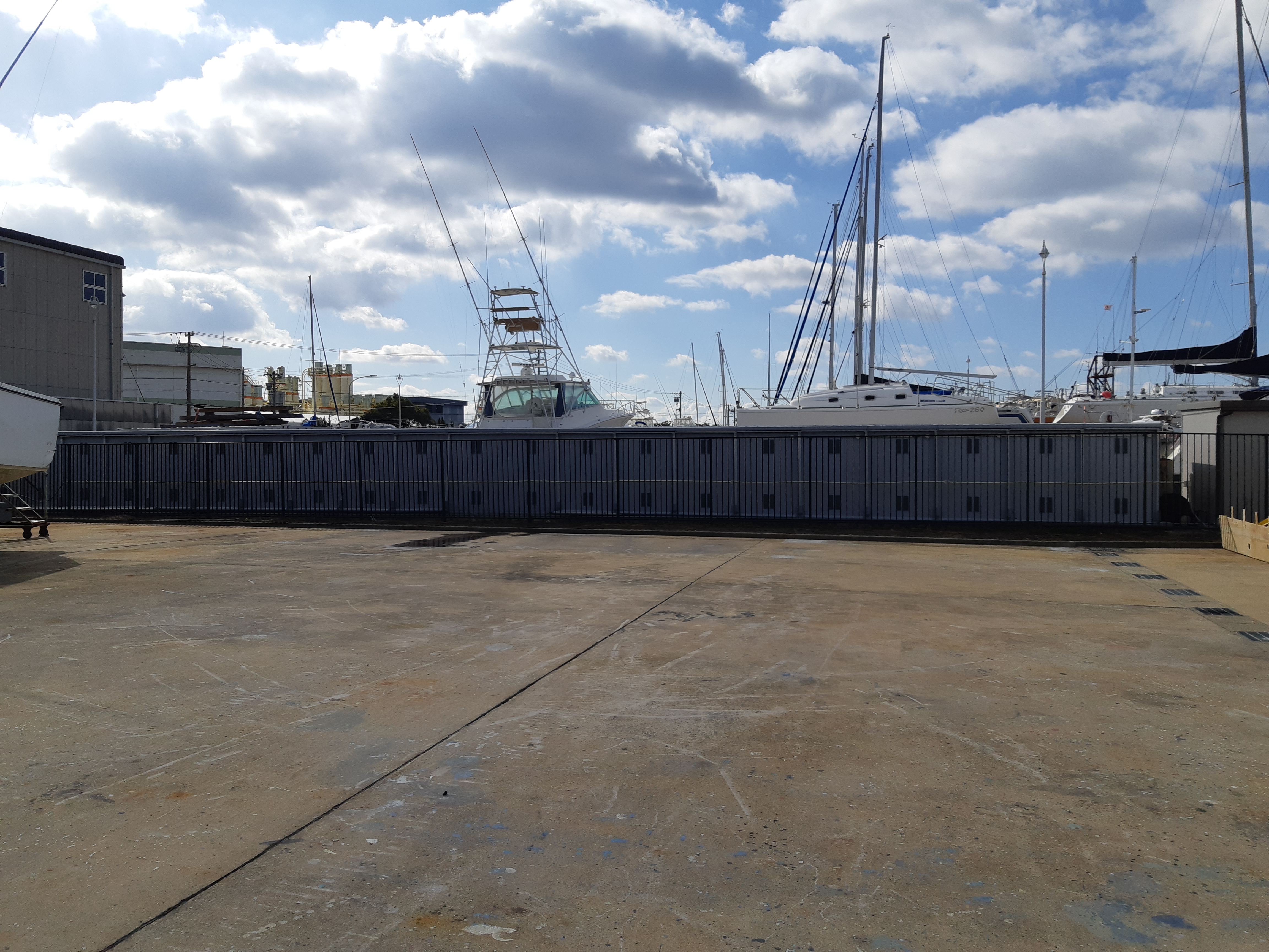 建物は、隣地マリーナとの境界近くにありました。