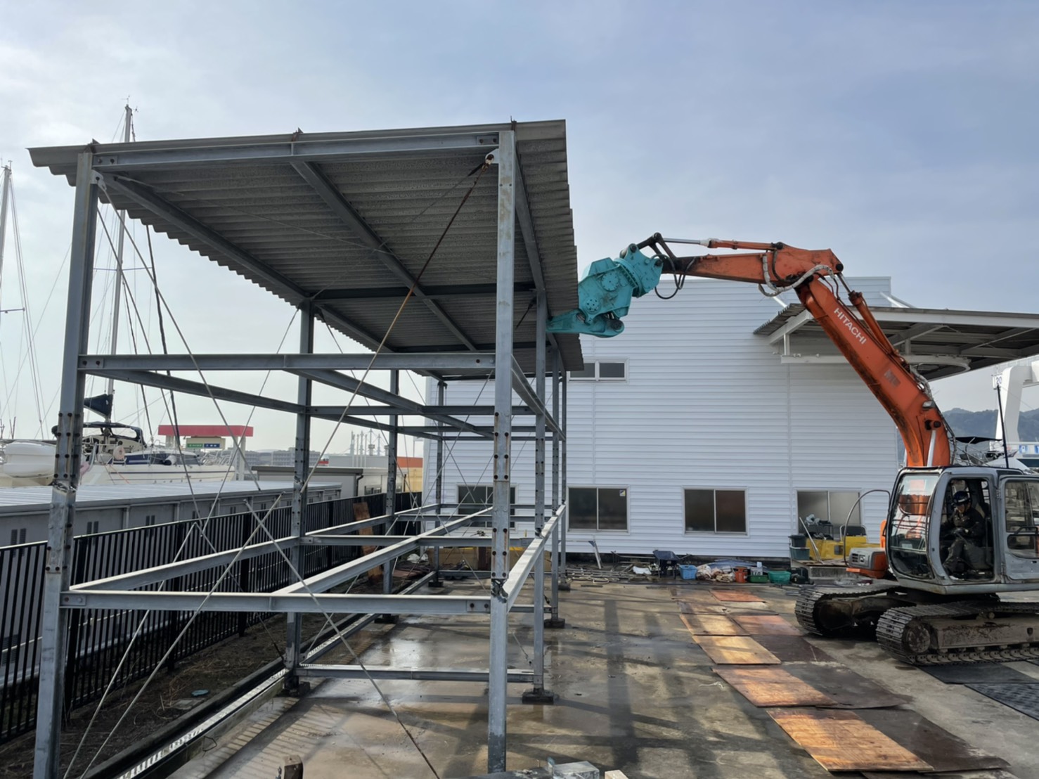 愛知県豊川市御津町御幸浜 Sマリーナ三河御津小型船舶特殊艇庫解体工事