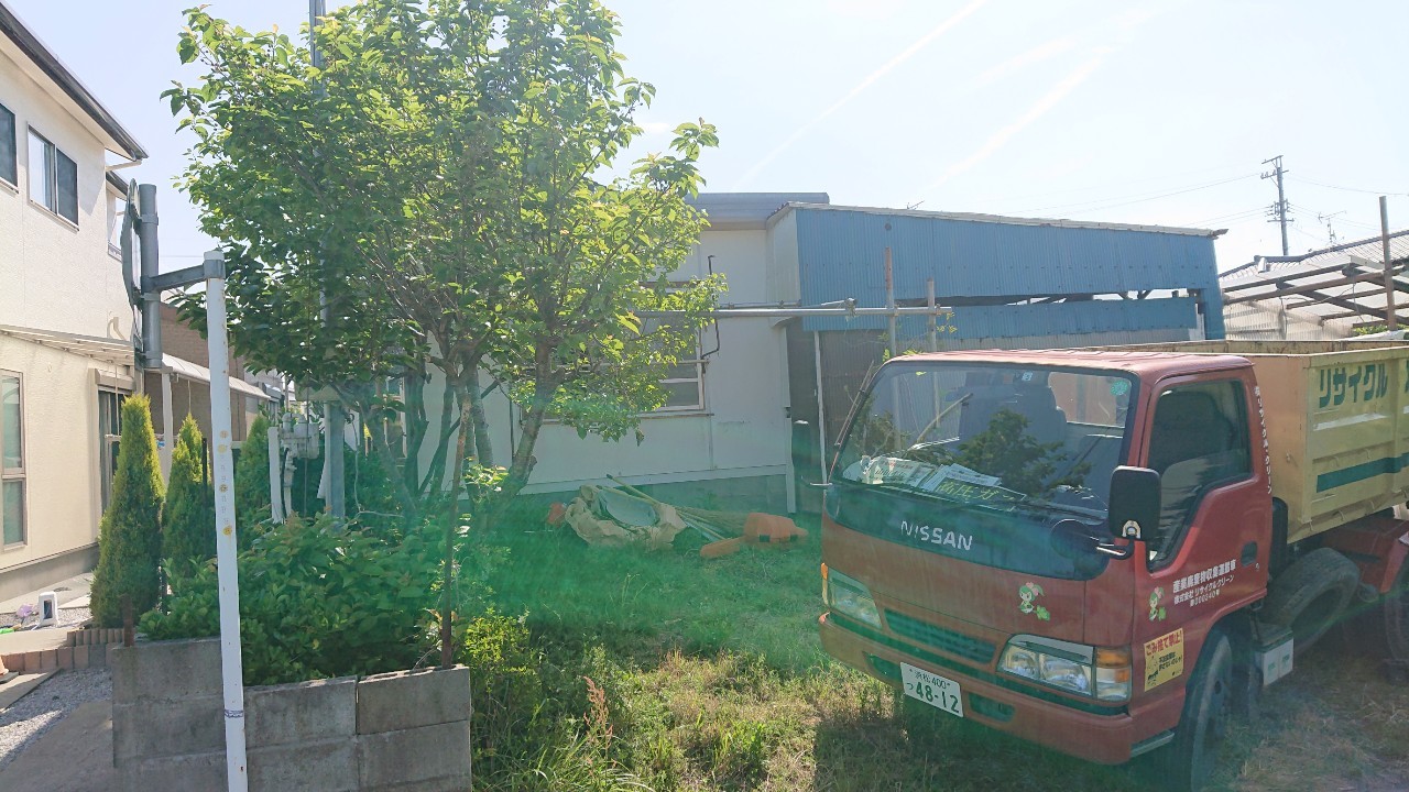 木造のプレハブ住宅と単管にて組んだ小屋の解体と樹木の伐採の工事でした。