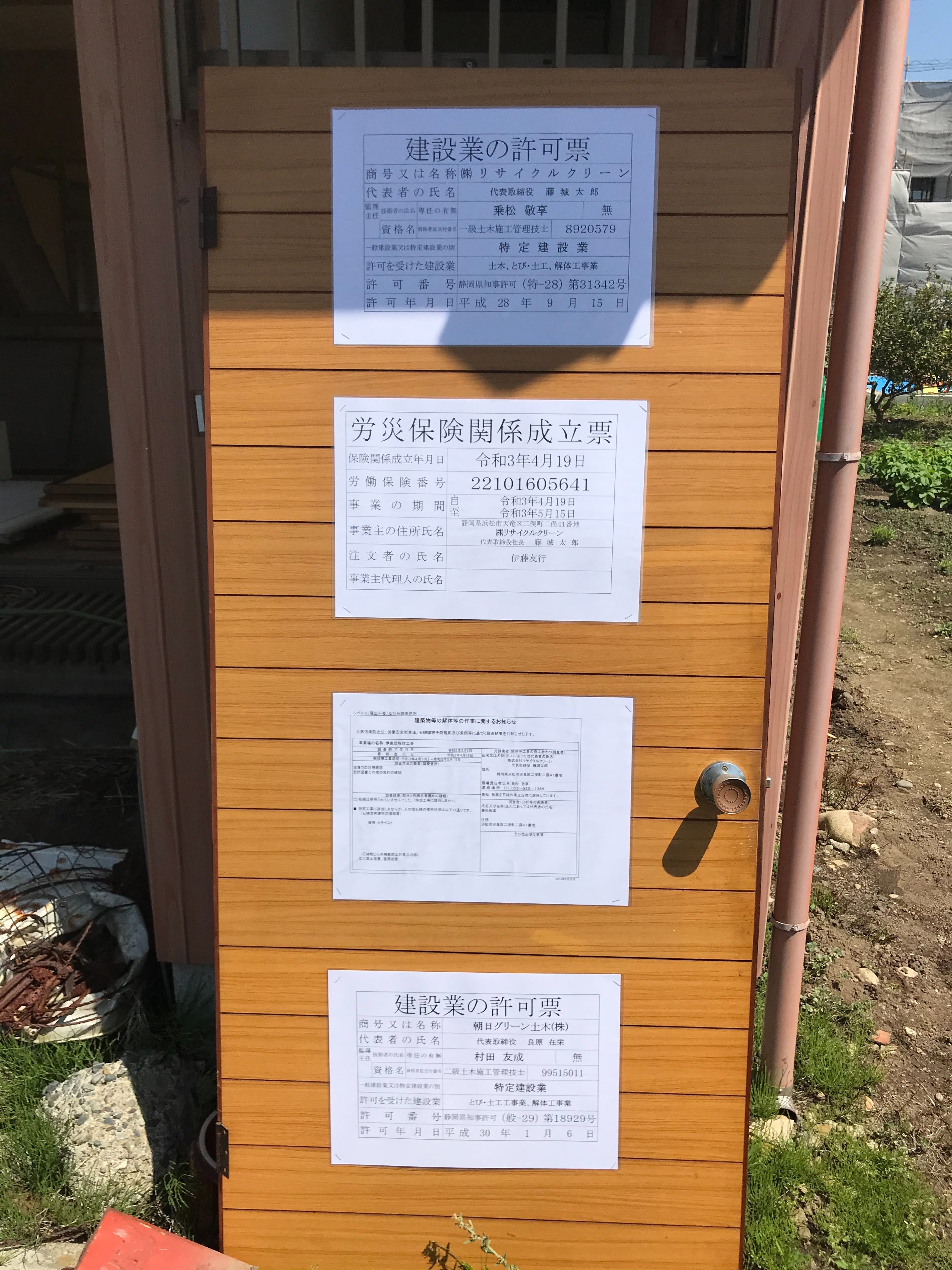 こちらは、おなじみの建設業許可証等の掲示状況です。