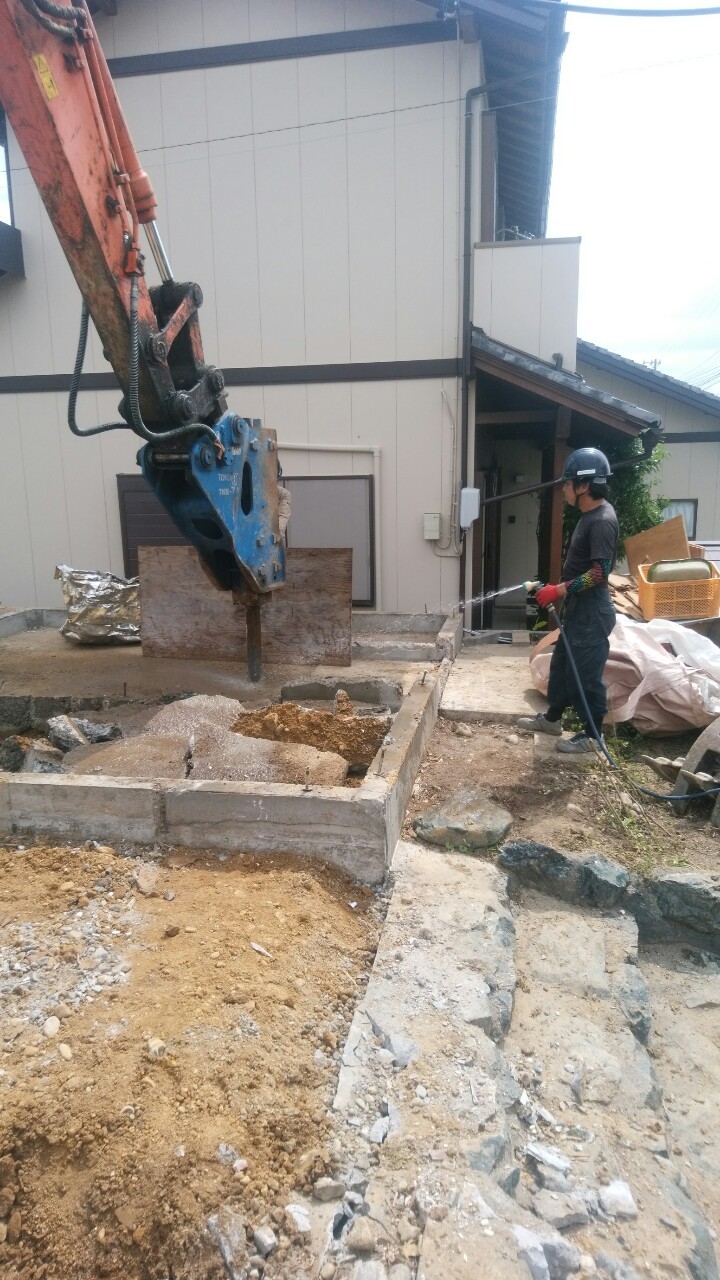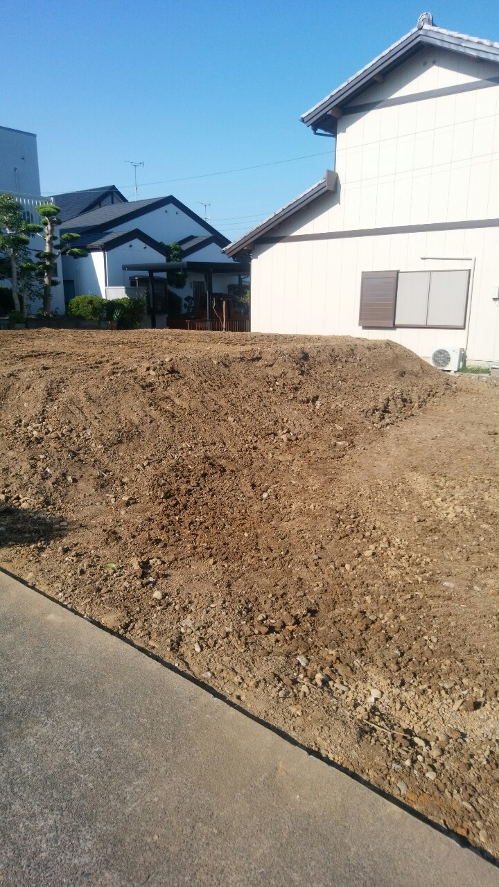 最後に土留め、植栽等を撤去し、道路面の土を鋤土をし建物の建てっていたところに引っ張り整地をして完了です。