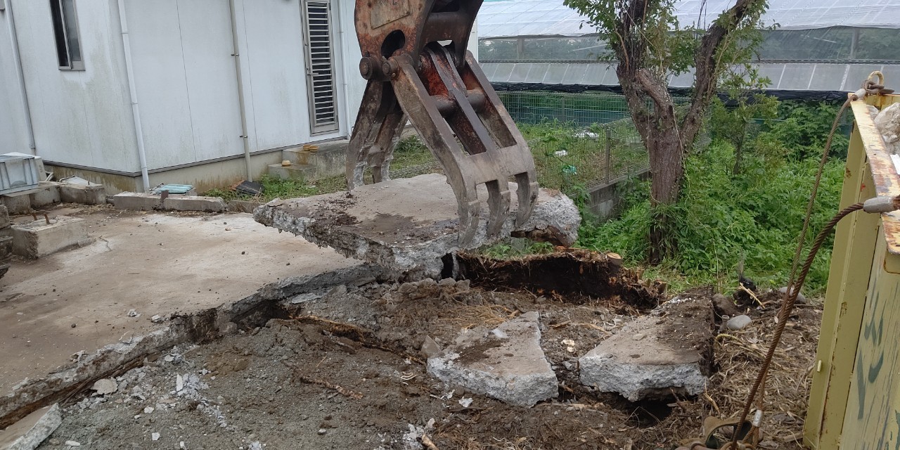 上屋の解体完了後は土間コンクリートの鉄橋、基礎の解体を行います。