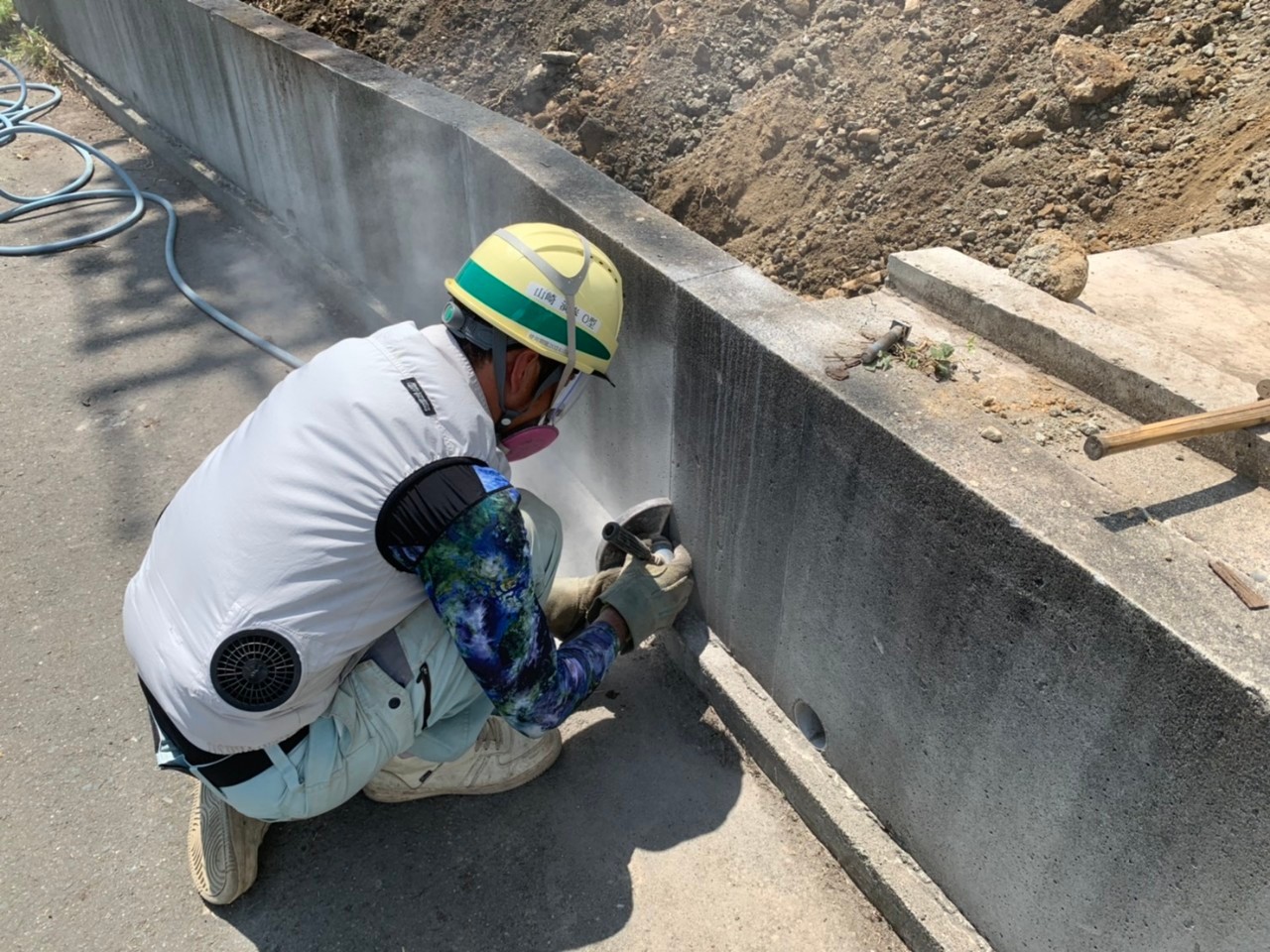 今回は一部土止め壁を残すため、ハンドカッターを使用しての縁切りをしました。
