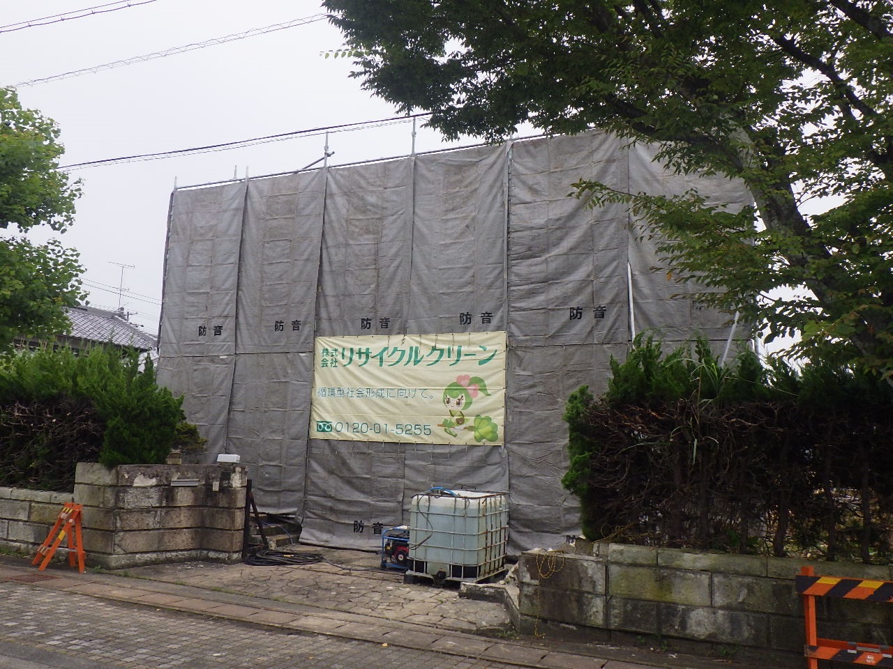 RC造の解体の為、防音シートにて養生を行い解体しました。