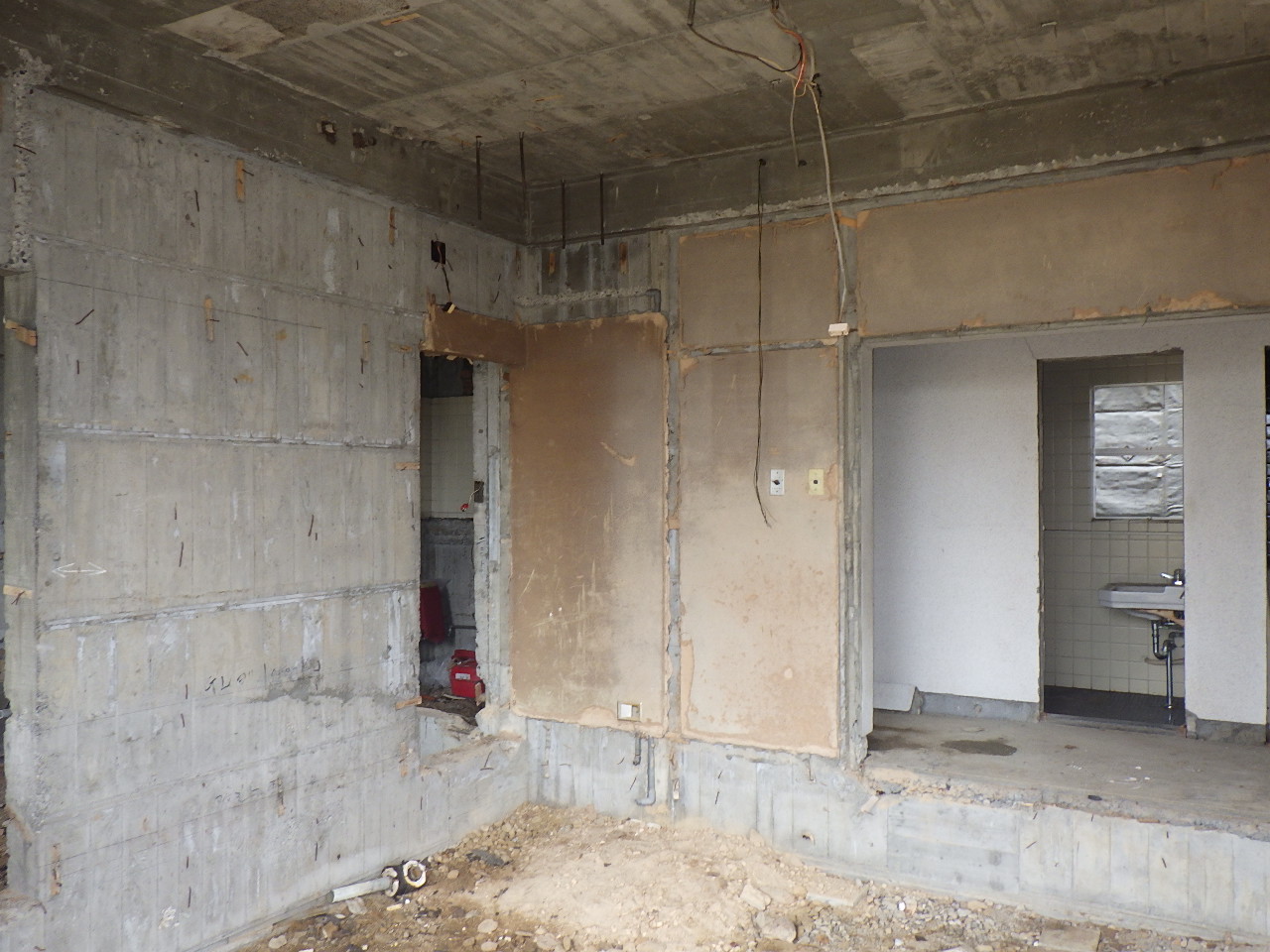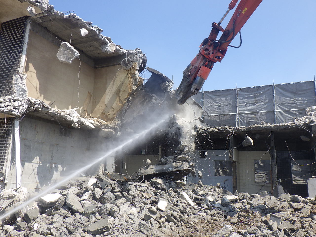 散水をしてほこりが出ないように注意しながら躯体を解体していきます。