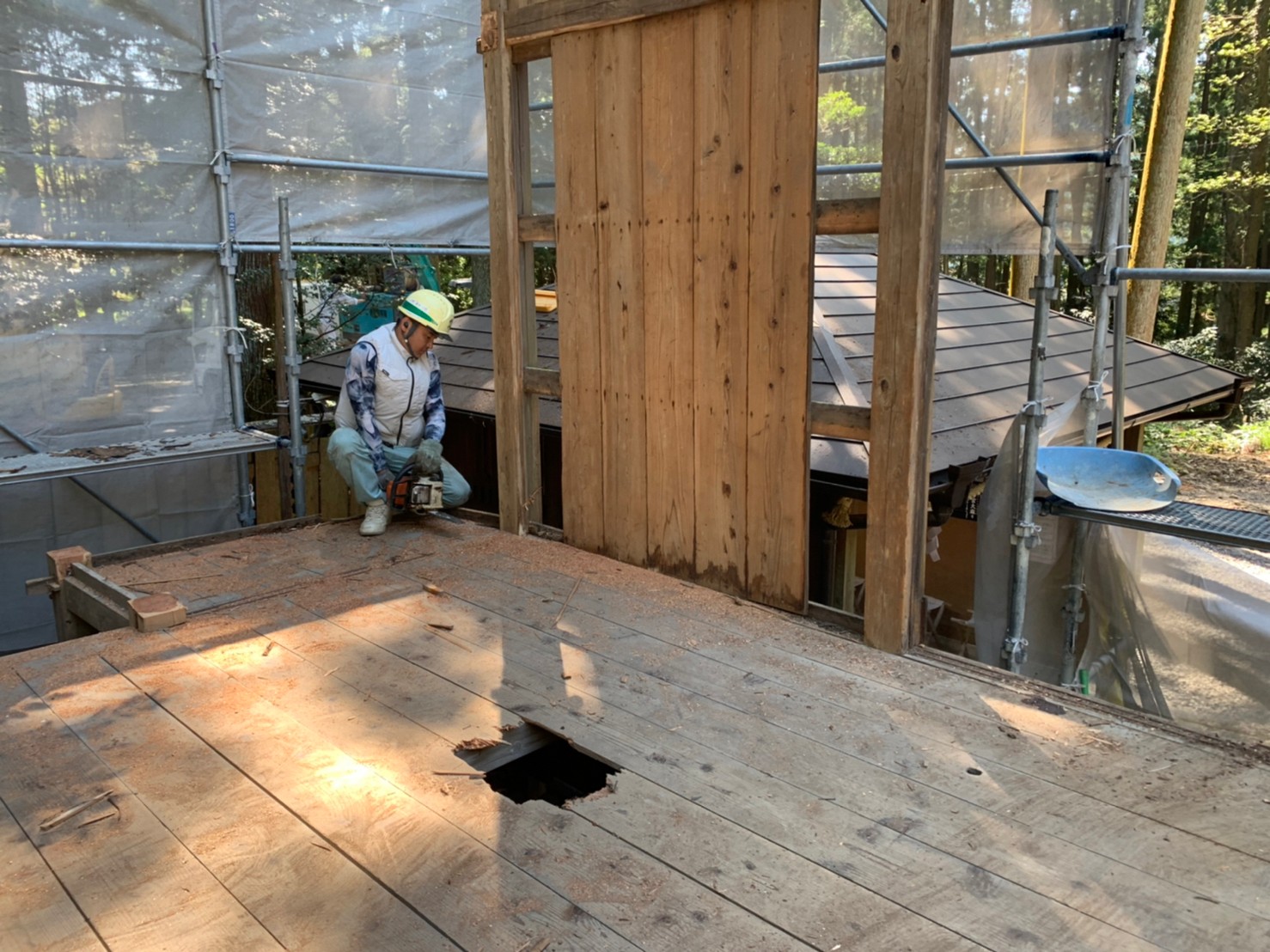 続いてチェーンソーによる人力解体 重機機械による搬出作業 完成です。