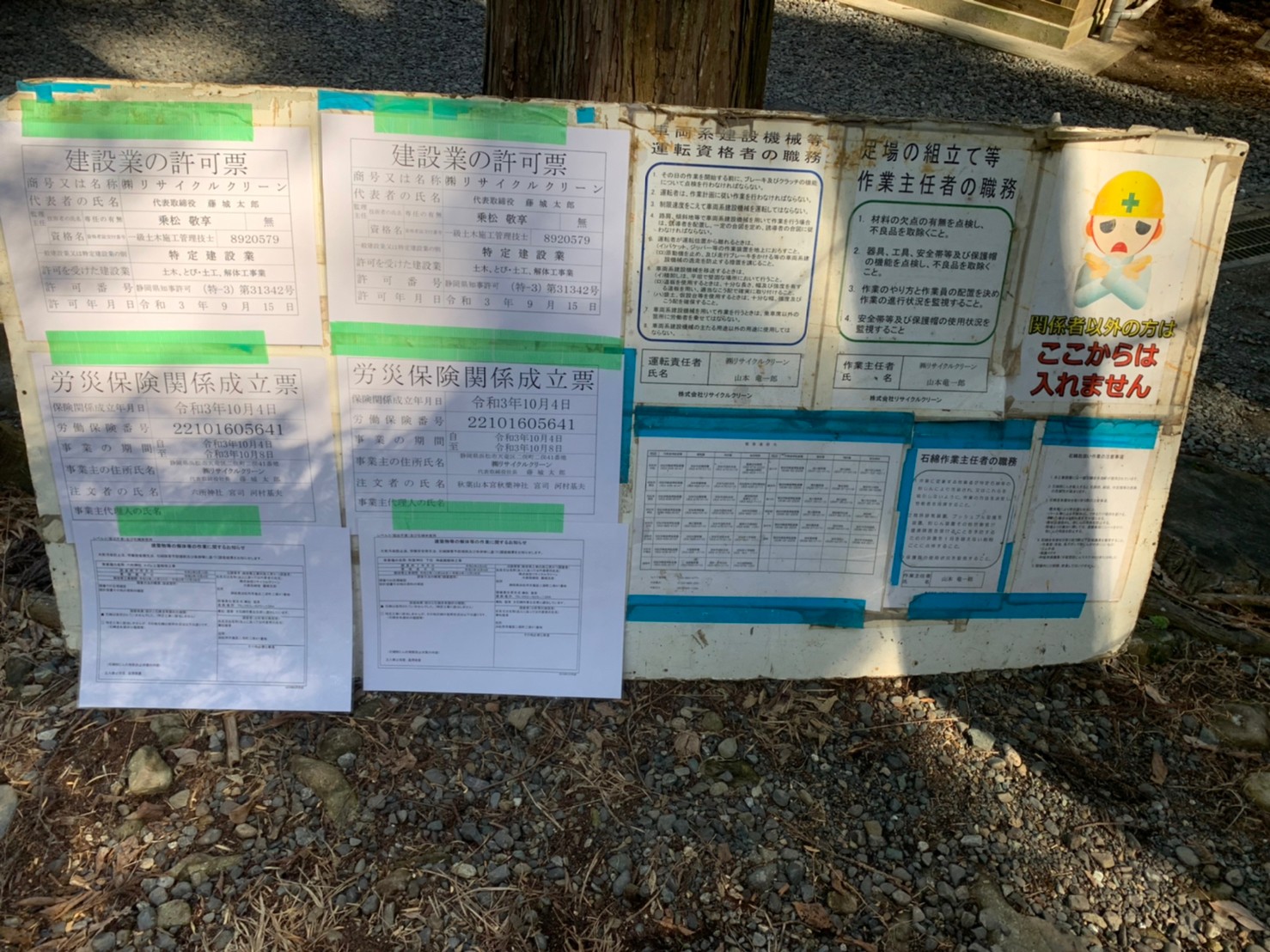 こちらは、おなじみの建設業許可証等の掲示状況です。