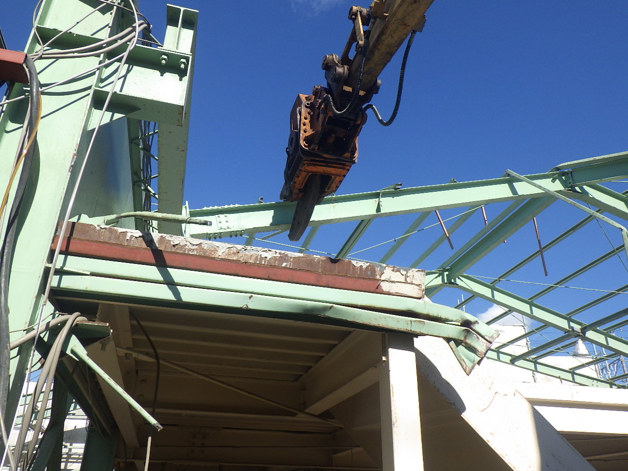 上屋の鉄骨を特殊なアタッチメント(鉄骨カッター)に変え