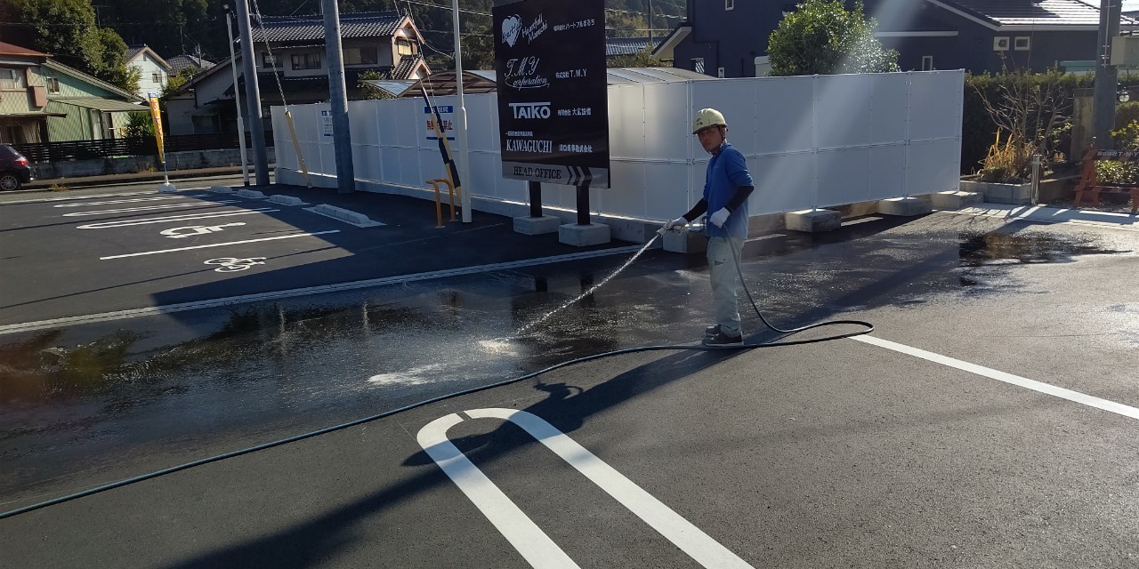 最後に解体にて進入路に使用していたところの舗装の清掃をして完了です。