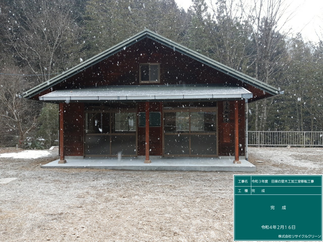 今回は、静岡県浜松市天竜区水窪町奥領家地内 にある公共施設 田楽の里木工加工室が三遠南信道に接続する道路の拡幅工事に合わせて移転工事をすることになり、弊社にて一般競争入札にて落札した物件を紹介します。
