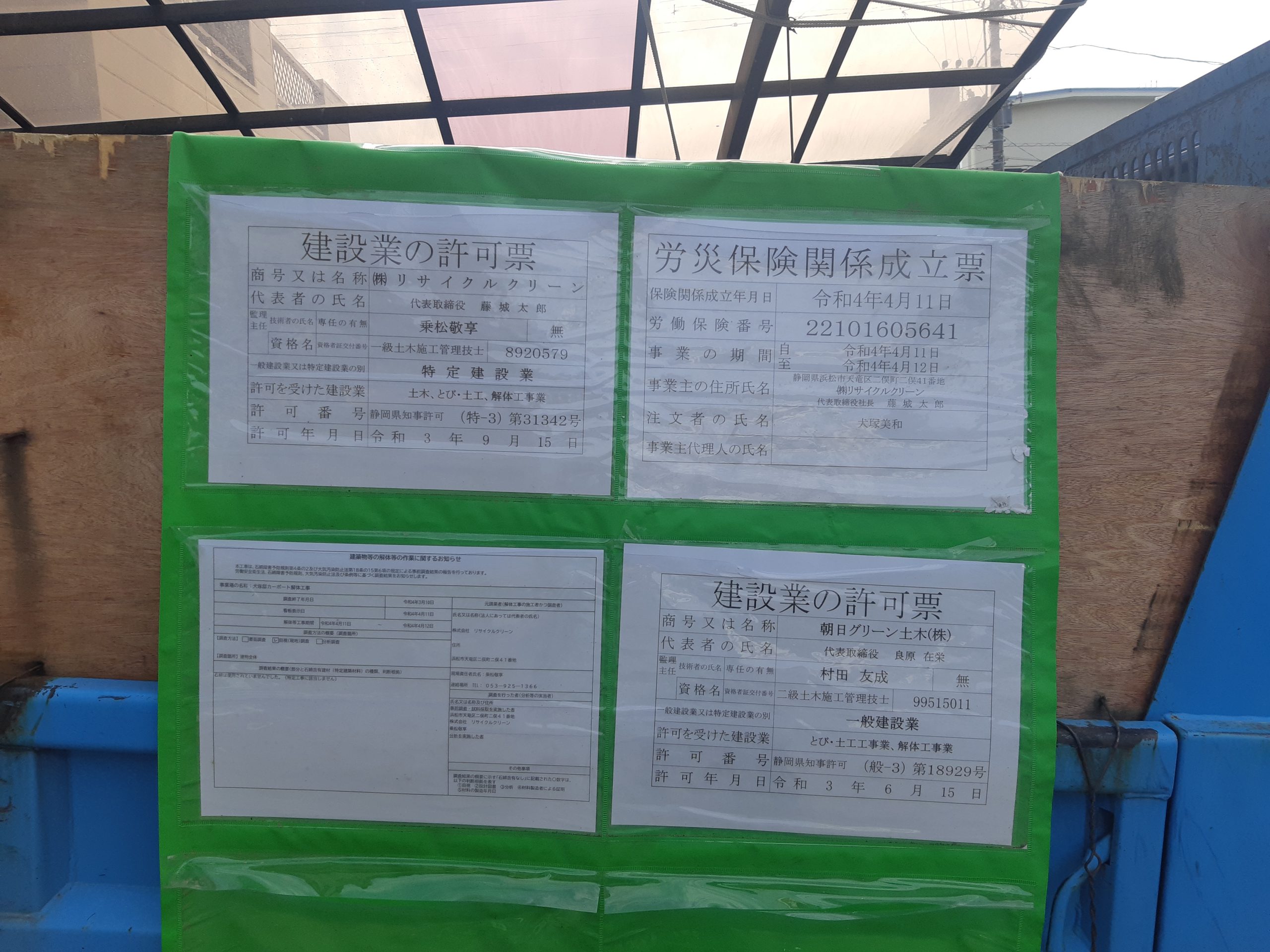 こちらは、おなじみの建設業許可証等の掲示状況です。